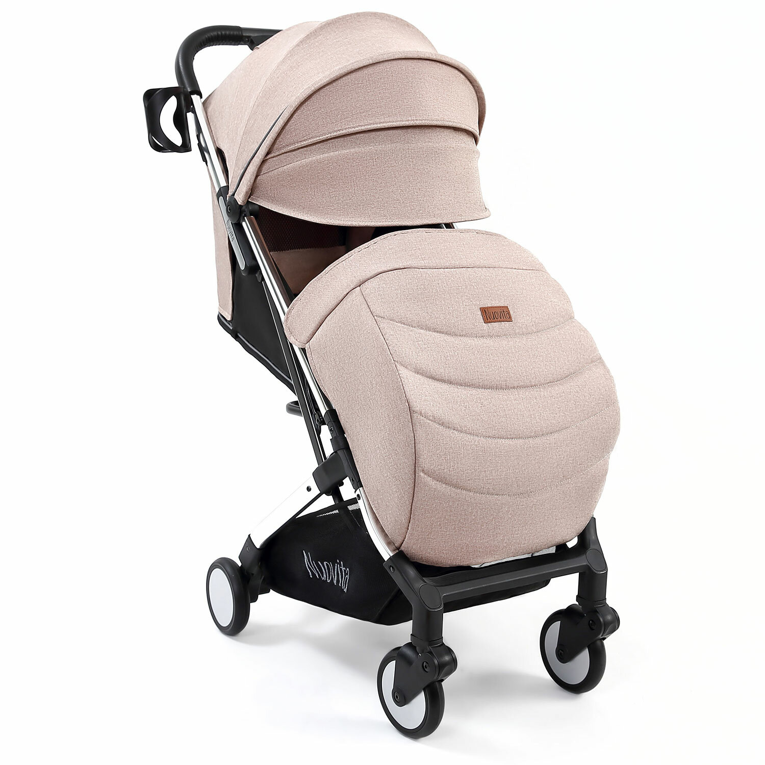 Торговая марка Nuovita представляет легкую демисезонную прогулочную коляску Nuovita Anima. Модель создана для детей в возрасте от 6 месяцев до 3-х лет и учитывает особенности российского климата, позволяя гулять с ребенком независимо от капризов погоды. Сиденье является довольно просторным, его ширина составляет 31 см, глубина 21 см, а высота спинки 42 см, что позволяет с комфортом устроить в коляске малыша, одетого в теплую одежду. Многопозиционная спинка способна откидываться из положения 115 градусов до уровня 165 градусов и в разложенном виде образует спальное место размером 77х31 см. Веерная подножка предполагает использование 3-х положений. Для того, чтобы ребенок не смог выскользнуть из коляски, в сиденье встроены пятиточечные ремни безопасности с мягкими накладками. Предусмотрен защитный откидной бампер с отделкой из экокожи, за который может держаться малыш. Родительская ручка также защищена накладкой из экокожи. Капор очень удобен в обращении, поскольку регулируется почти бесшумно и имеет 4 варианта раскрытия. Он снабжен отгибающимся козырьком от солнца и двумя окошками для обзора и проветривания. При максимально опущенном капоре ребенок надежно закрыт от встреч