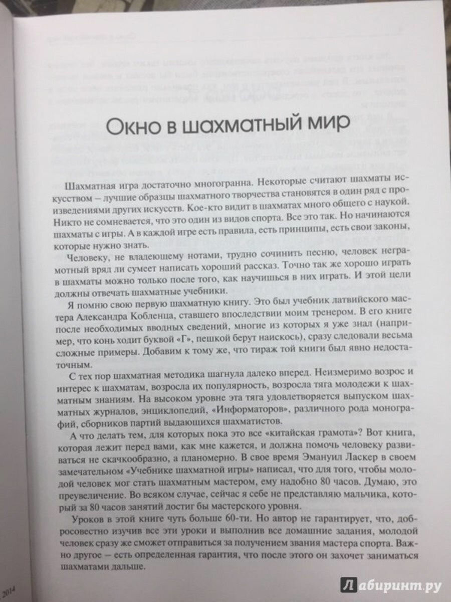 Данную книгу рекомендовал тренер в шахматной школе. Купили и остались очень довольными! Оформление прекрасное, полиграфия на уровне, листы белые, все четко. Держать в руках одно удовольствие! О содержании хочется сказать отдельно: действительно, замечательный помощник для всех тех, кто увлечен всерьез шахматами. Информация представлена очень последовательно, структурировано, понятно. Книгу рекомендую! На момент покупки в Читай-городе была самая лучшая цена)). Спасибо!