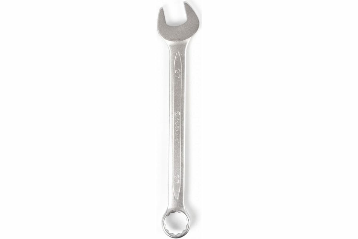 Ключ комбинированный 27 мм кобальт , предназначен для отвинчивания/завинчивания мелкого резьбового крепежа с шестигранными головками при производстве строительных, электротехнических, монтажных и автосервисных работ. Изготовлен по стандарту DIN 3113 из хром-ванадиевой стали Cr50BV30, с закалкой рабочих поверхностей до 47-50 HRC. Защитное матовое хромовое покрытие ключа, нанесенное электролитическим способом, предохраняет от коррозии, улучшает внешний вид, при этом ключ не скользит в ладони в процессе работы. универсальный гаечный ключ, состоящий из двух рабочих профилей - рожкового и накидного. Используется при проведении слесарно-монтажных работ на производстве, в автомастерских и в быту.Ключ состоит из двух рабочих профилей - рожкового и накидного, расположенных под углом 15 град. к оси рукоятки, что позволяет уверенно работать в труднодоступных местах.Рожковый профиль наиболее хорошо подходит для отвинчивания средне и слабо затянутых соединений, с боковой стороны резьбового соединения при невозможности использовать накидной профиль ключа или торцевую головку.Накидной профиль – кольцевая двенадцатигранная рабочая часть. Наличие шести пятен контакта позволяет применять повышенные нагрузки к крепежу без риска его деформации, но для работы требуется доступ к крепежу со всех сторон.Ключ обладает отличными прочностными характеристиками, выдерживая высокий крутящий момент, и не меняет геометрию под нагрузкой. Длина общая 310мм. Толщина рожкового профиля 9,2 мм. Толщина накидного профиля 12,6 мм.Фирма-производитель оставляет за собой право на внесение изменений в конструкцию, дизайн и комплектацию товара. Пожалуйста, сверяйте информацию о товаре с информацией на официальном сайте компании производителя или уточняйте информацию о конкретной модели и ее наличие у менеджеров нашей компании.