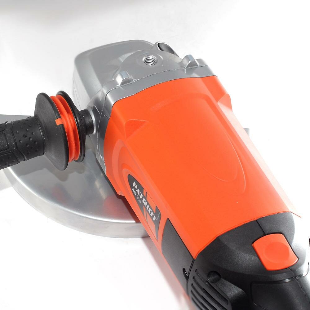 Машина углошлифовальная (УШМ) PATRIOT с диском на 230 мм и максимальной частотой вращения в 6500 оборотов в минуту – это простой в использовании и компактный инструмент для шлифовки, полировки и резки металлических конструкций и поверхностей. Повышенный крутящий момент двигателя обеспечивает максимальный результат. Модель оснащена прогрессивной системой пылезащиты, а также механизмом быстрой блокировки шпинделя для удобной смены оснастки, поэтому дополнительные устройства вам не понадобятся.