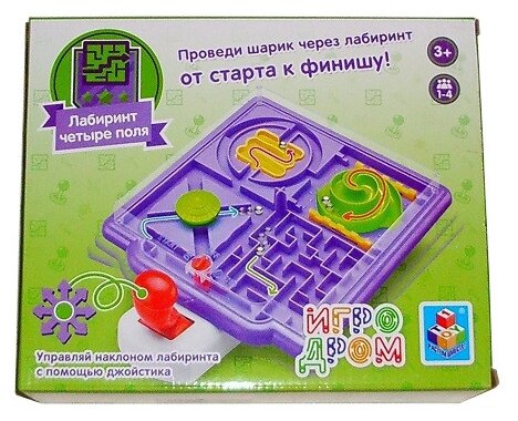 Настольная игра 1Toy «Лабиринт четыре поля». Игра, в которую можно играть даже в одиночестве - или соревноваться с друзьями, кто быстрее проведет шарик к финишу. С помощью рычага управляйте наклоном лабиринта и проводите мячик через препятствия. Это не так просто, как кажется со стороны! Особенности: Развивает координацию и моторику. Развивает пространственное мышление. Тренирует концентрацию внимания. Как играть: Поместите шарик на старт. Используйте джойстик, чтобы менять наклон поля и вести шарик по лабиринту. Нужно пройти через 4 секции лабиринта, чтобы достичь финиша. Поставьте рекорд по скорости прохождения игры соло или соревнуйтесь в скорости с друзьями.