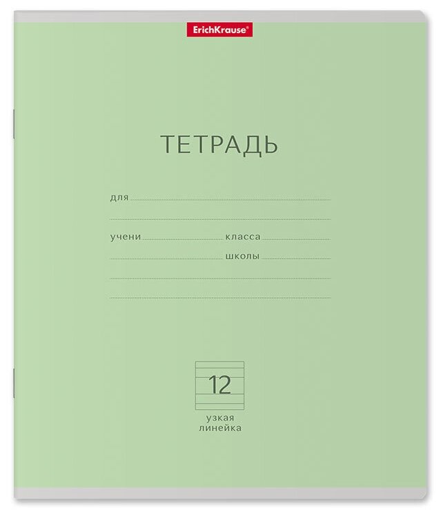 Тетрадь А5+ 12л узкая линейка Erich Krause школьная Классика зеленая (46465)
