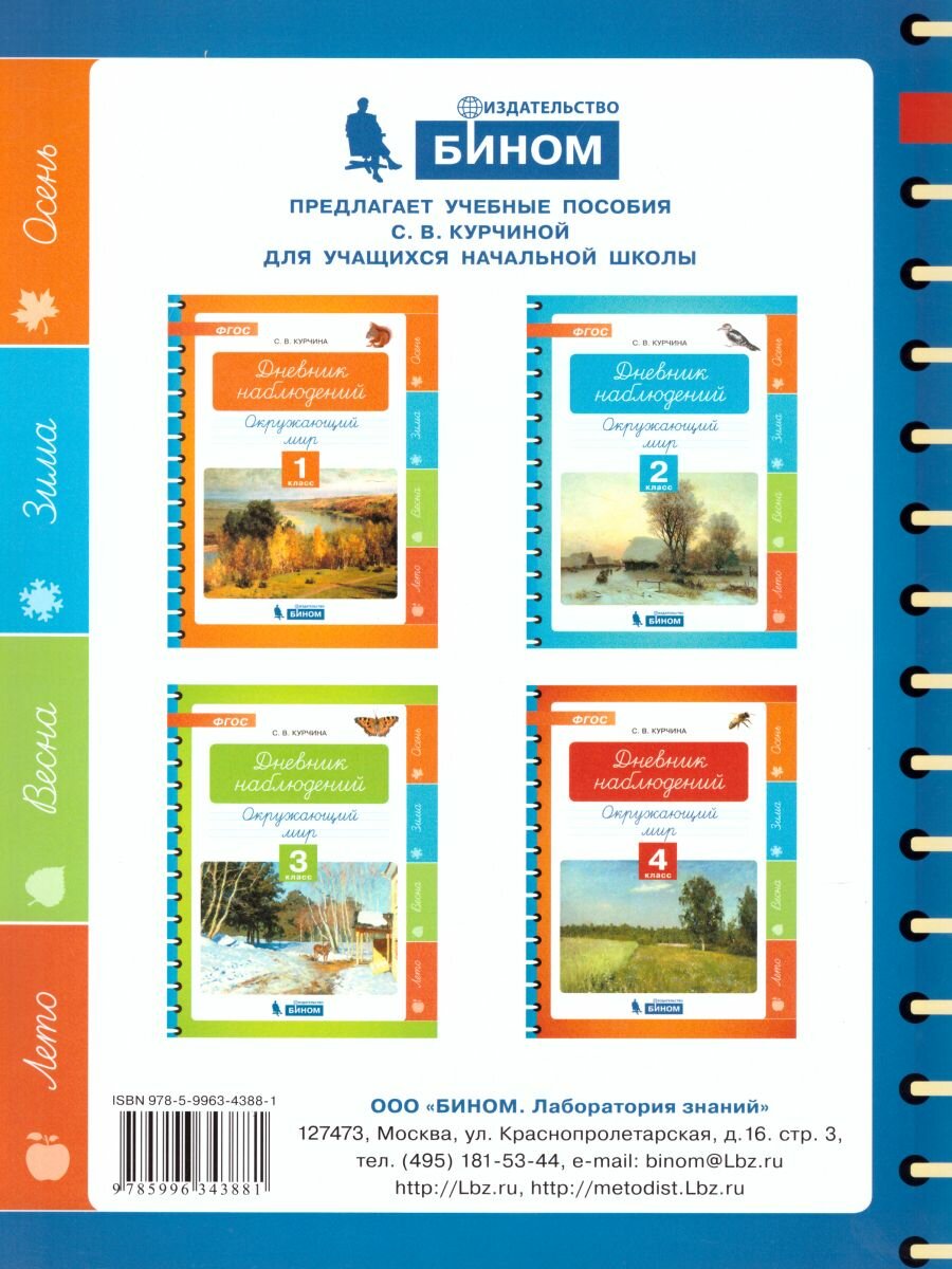 Окружающий мир. 3 класс. Дневник наблюдений. (Курчина Светлана Валентиновна); БИНОМ. Лаборатория знаний, 2019