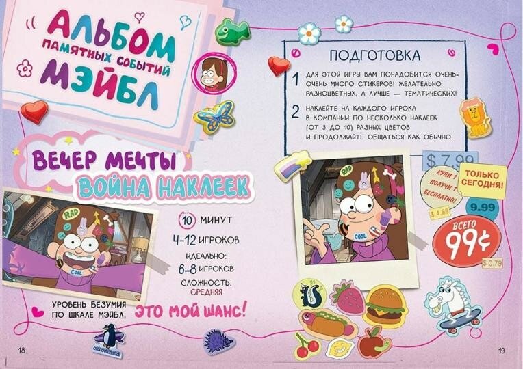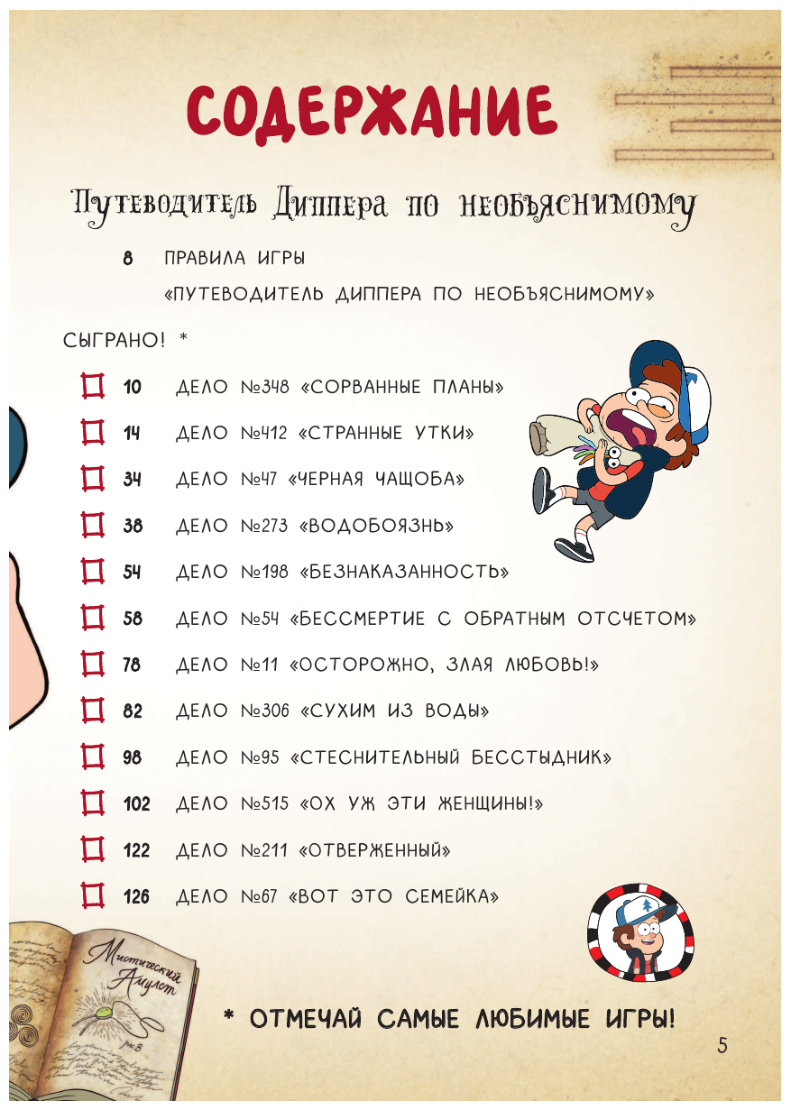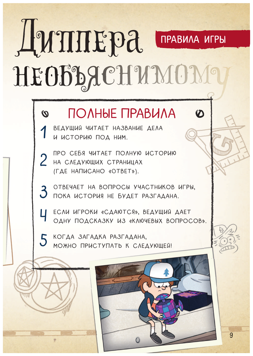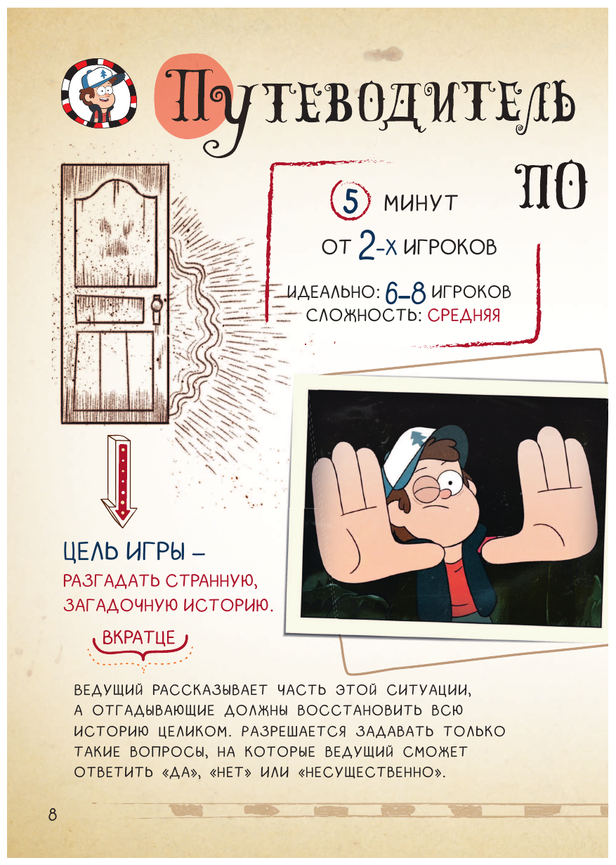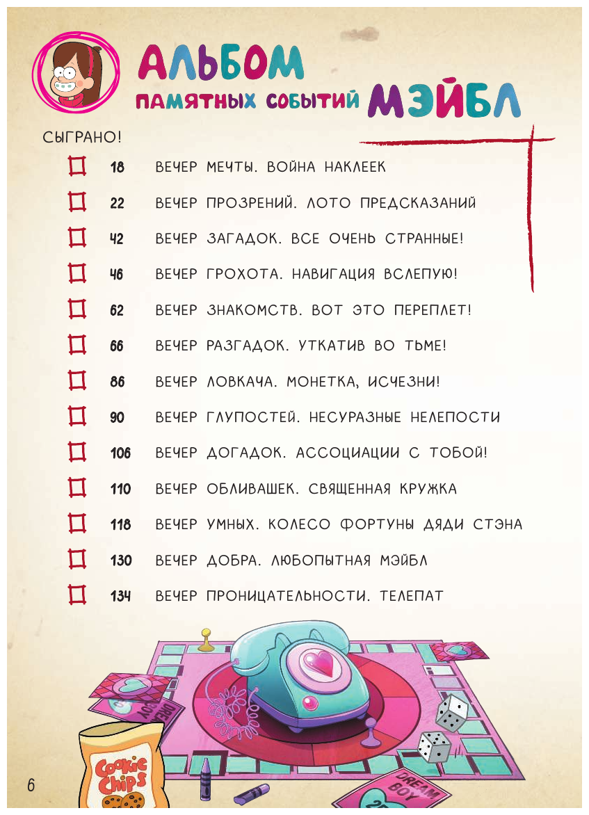 Геймбук по мотивам мегапопулярного мультсериала "Гравити Фолз" - это бесценный сборник игр и развлечений для времяпровождения в шумной компании или одному в тишине и покое. 25 увлекательных игр с подробными инструкциями плюс фокусы от дяди Стэна и суперсмешные тесты от Мэйбл не дадут заскучать ни на минуту! Содержание игр основано на 1-м сезоне суперпопулярного сериала. Организовать самую крутую вечеринку сезона просто - открываем книгу и... все гости тут же оказываются в "Гравити Фолз"! В книгу вошли игры для вечеринок по темам: "Путеводитель Диппера по необъяснимому", "Альбом памятных событий Мэйбл", "Фокусы дяди Стэна" и "Советы Мэйбл".