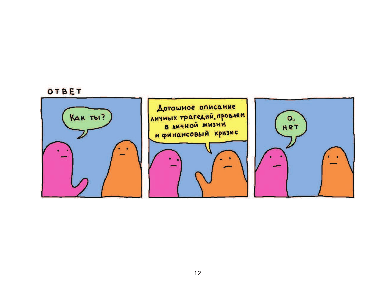 В этих смешных и ярких комиксах абсурд переплетается с актуальными проблемами. Мы можем посмотреть на себя со стороны, улыбнуться и воскликнуть: О, нет!