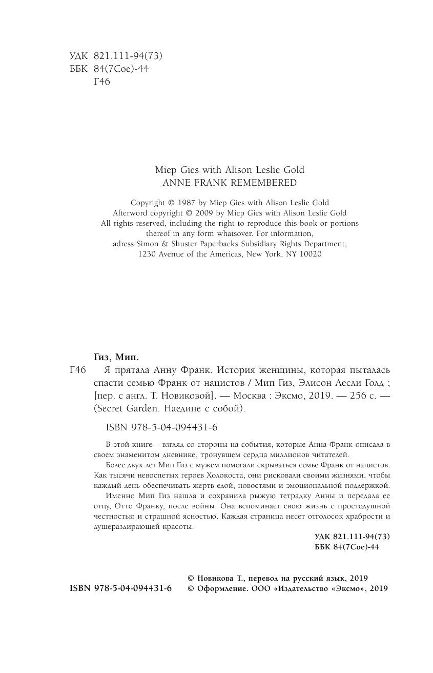 | Автор(ы) | Голд Элисон Лесли (соавтор), Гиз Мип, Новикова Татьяна Олеговна (переводчик) |