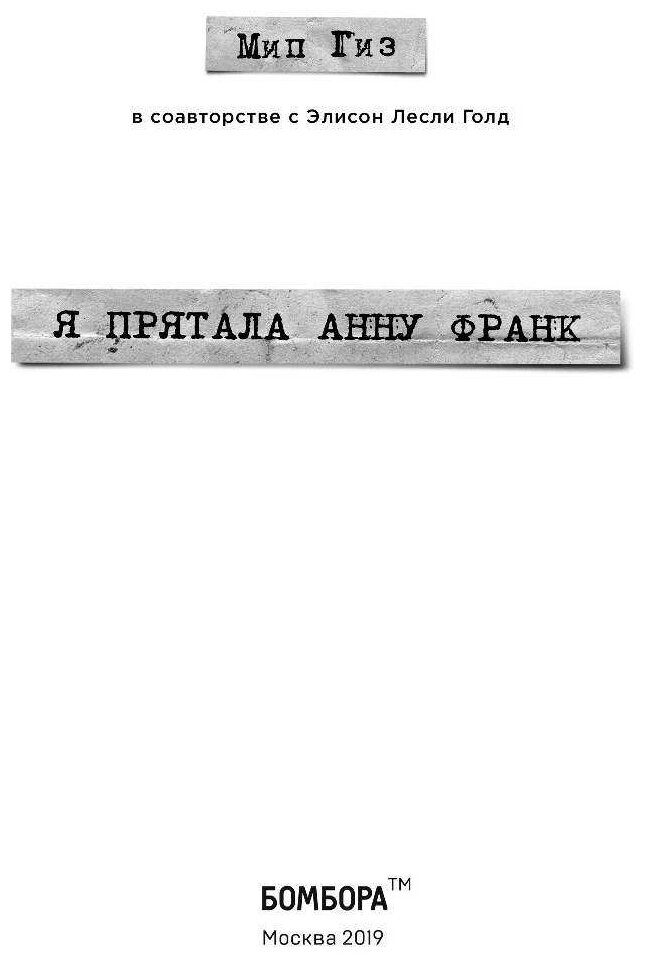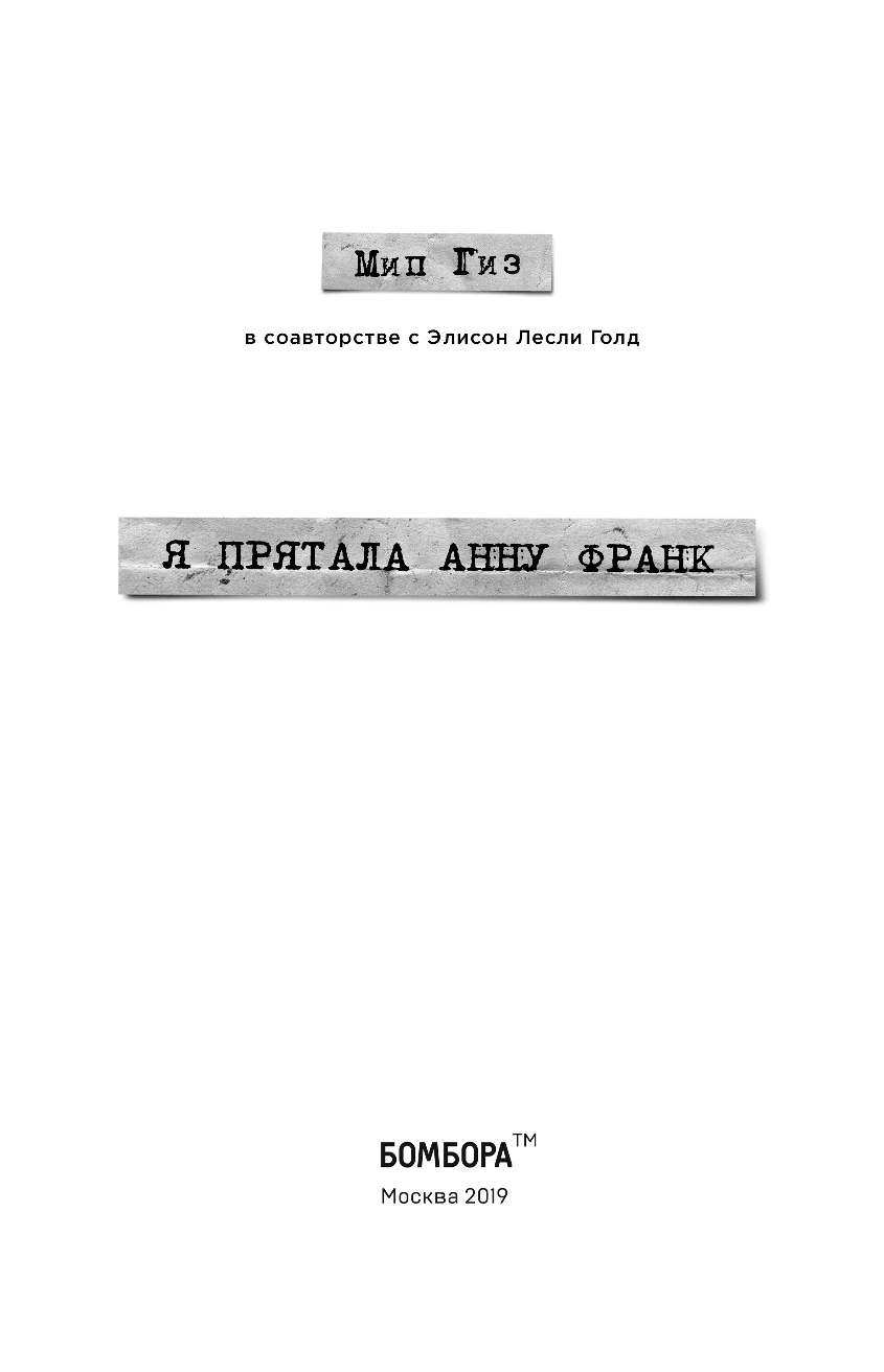Я прятала Анну Франк. История женщины которая пыталась спасти семью Франк от нацистов (Голд Элисон Лесли (соавтор), Гиз Мип, Новикова Татьяна Олеговна (переводчик)); БОМБОРА, 2019