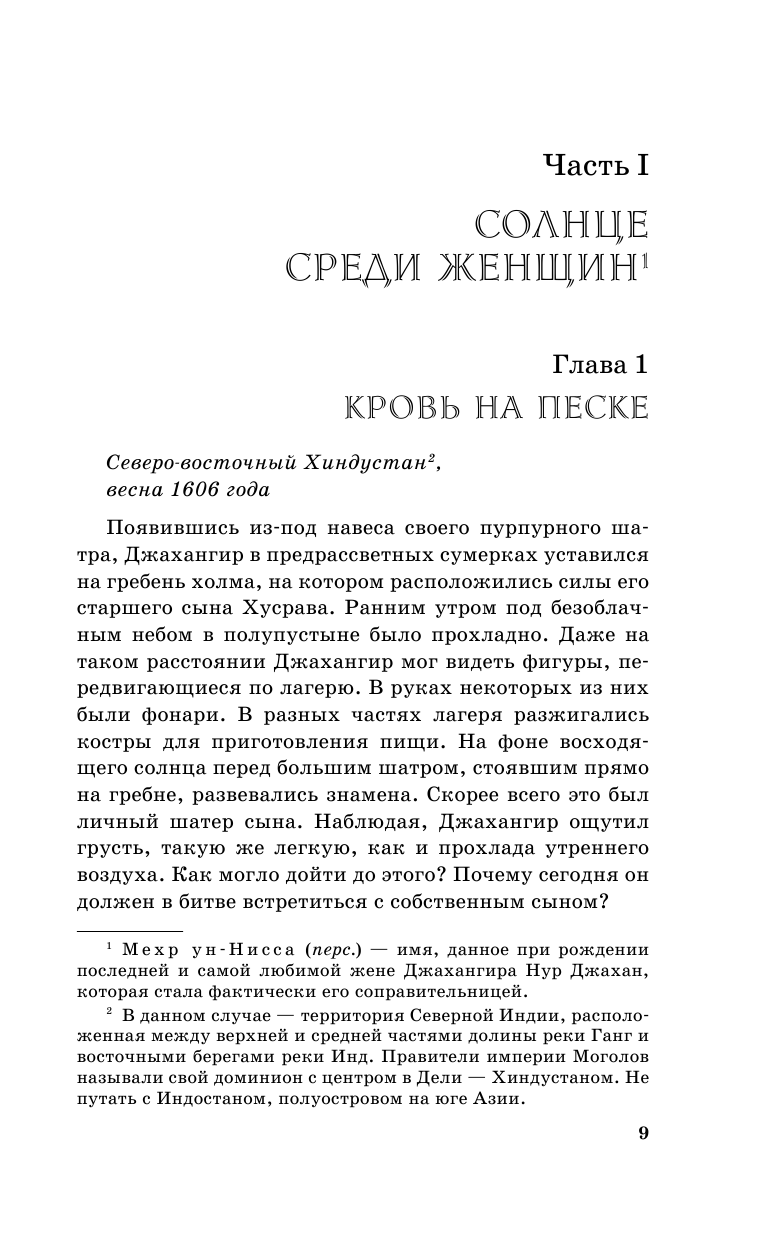 Как и предыдущие книги серии, эта очень интересно рассказывает о четвёртом правителе Великих Моголов Джихангире, хотя по сути главные действующие лица его третий сын Хуррам и одна из жён Мехрунисса. Война за власть, интриги, восстание сына на отца и на брата, всё это и многое другое