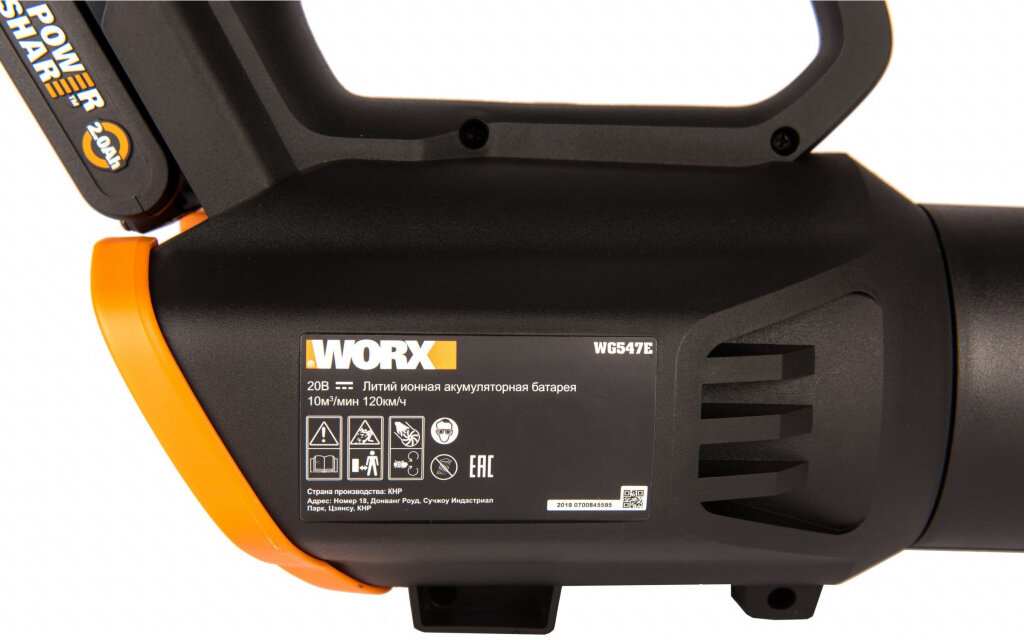 Модель: Аккумуляторный воздуходув Worx с технологией TURBINE WG547E.9 120 км/ч