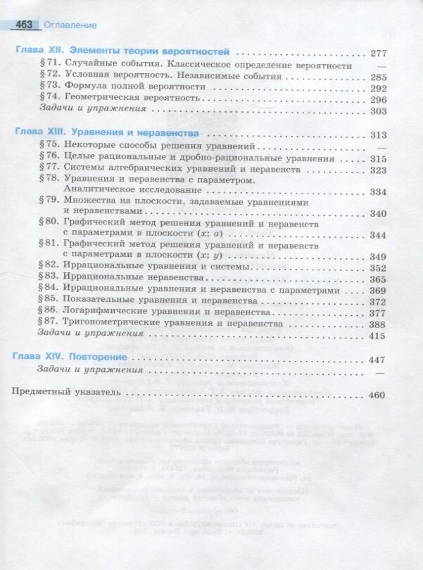 Учебник предназначен для классов с углублённым изучением математики, в которых на изучение алгебры и начал математического анализа отведено не менее 4 часов в неделю.
