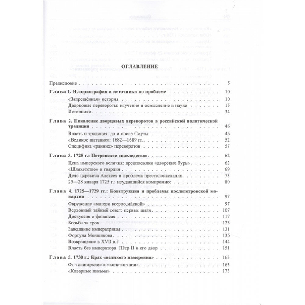 "Эпоха дворцовых переворотов" 1725-1762 гг. - период, когда реформы Петра I и созданные им имперские структуры проходили проверку временем. В книге исследуются причины наступившей в послепетровское время политической нестабильности и механизмы её преодоления, рассматриваются события дворцовых "революций" 1725, 1727, 1730, 1740-1741 и 1762 гг., выявляются их типичные черты и особенности, прослеживаются судьбы участников и вызванные ими к жизни практики взаимодействия верховной власти и дворянства.