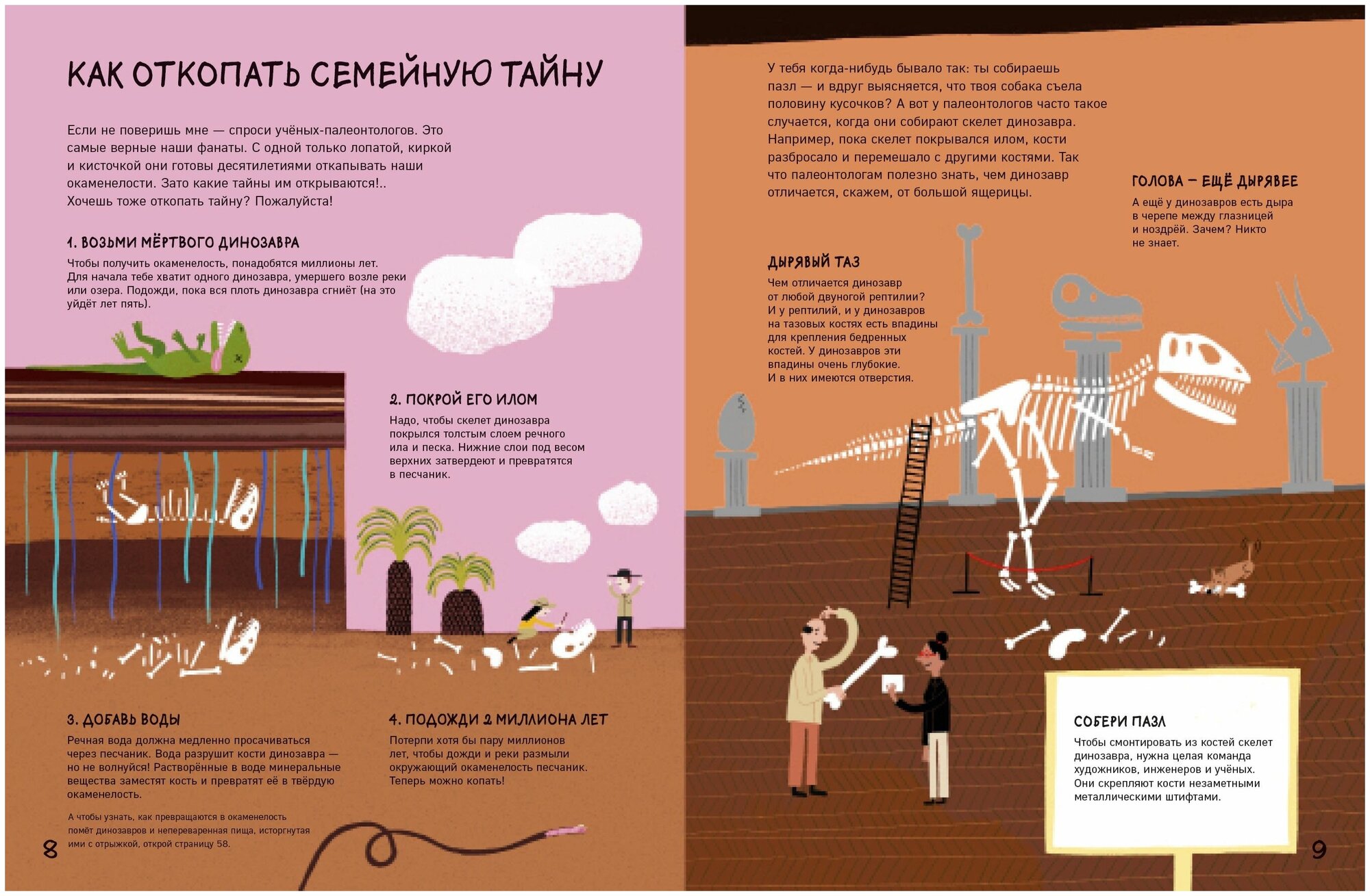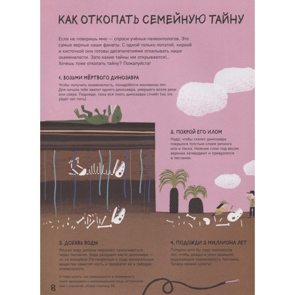 Как откопать окаменелость? Во-первых, возьми мертвого динозавра. Во-вторых, покрой его илом. Потом подожди три миллиарда лет. Ну, вы поняли! Стиль изложения такой.