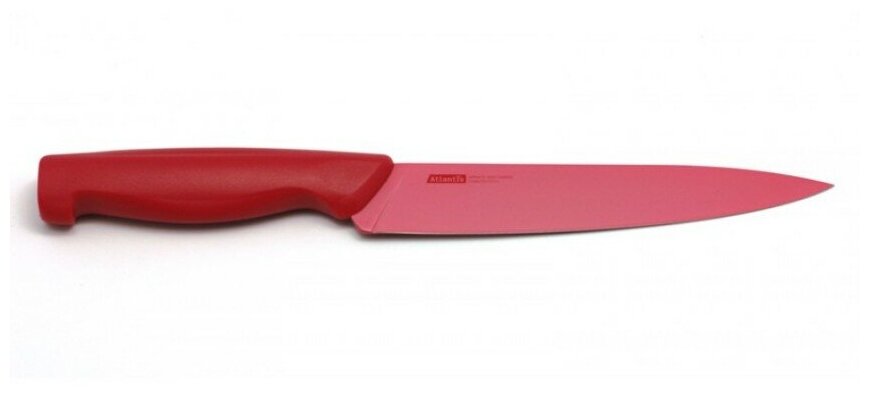 Нож для нарезки "Atlantis" изготовлен из японской высокоуглеродистой нержавеющей стали. Прочный и острый клинок обеспечивает идеальную нарезку мяса, овощей, сыра и других продуктов. Безопасное покрытие лезвия не дает пище прилипать к ножу. Эргономичная рукоятка изготовлена из пластика с антибактериальной защитой Microban, которая замедляет рост бактерий, вызывающих пятна и неприятный запах. Яркий дизайн, а также красивое сочетание красных оттенков клинка и ручки добавит красок в интерьер вашей кухни. Характеристики: Материал: нержавеющая сталь, пластик. Цвет: красный. Длина лезвия: 18 см. Общая длина ножа: 29,5 см. Размер упаковки: 39,5 см х 8,5 см х 2 см. Артикул: 7S-R.
