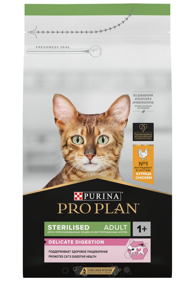 Корм сухой для кошек PRO PLAN® Sterilised Adult DELICATE DIGESTION — это полюбившийся PRO PLAN® Sterilised OptiDigest с новым названием, но с прежним составом и качеством.