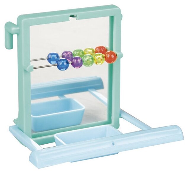 Эта забавная игрушка позволит Вашему пернатому другу весело проводить время в клетке. Небольшое зеркальце прямоугольной формы обрамлено пластиковой рамкой, к которой крепится жёрдочка и компактная ёмкость для корма или питья. Также на зеркале предусмотрены счёты с разноцветными шариками, которые попугай будет с большим интересом перемещать. Игрушка надёжно крепится к клетке специальными крючками.