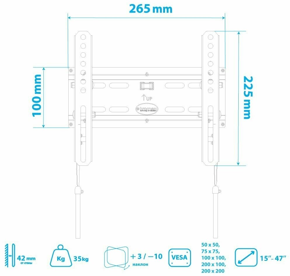 Кронштейн Kromax 15"-47" 1 степень свободы VESA 200х200мм до 35кг