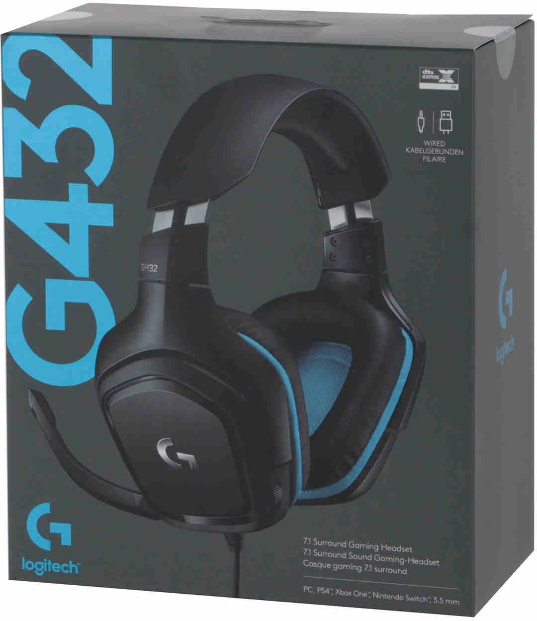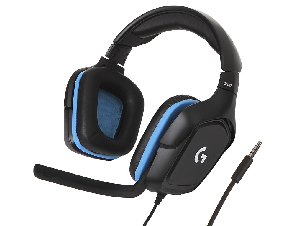 Гарнитура LOGITECH G432 Leatherette для ПК и игровых консолей накладные черный / синий 981-000770