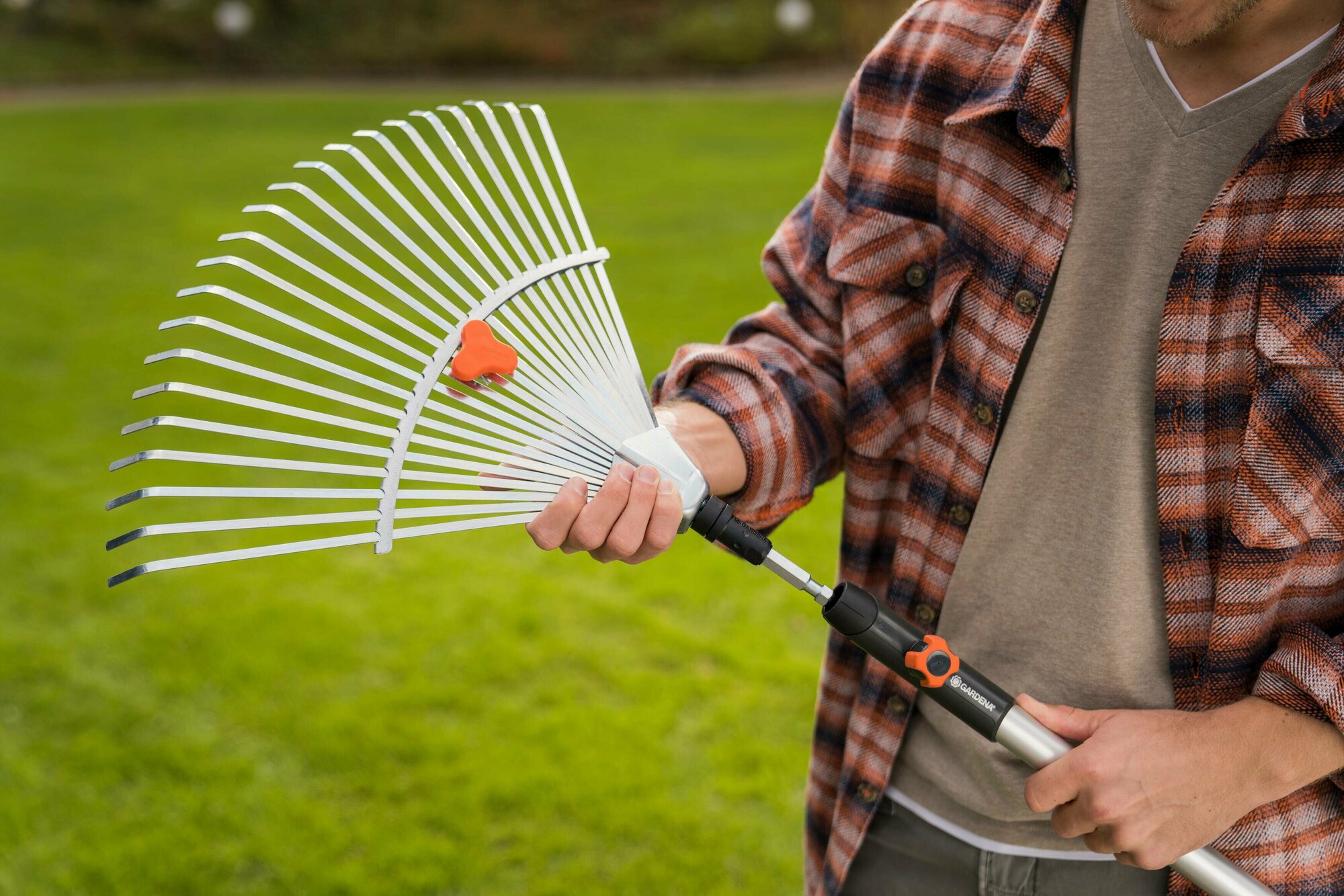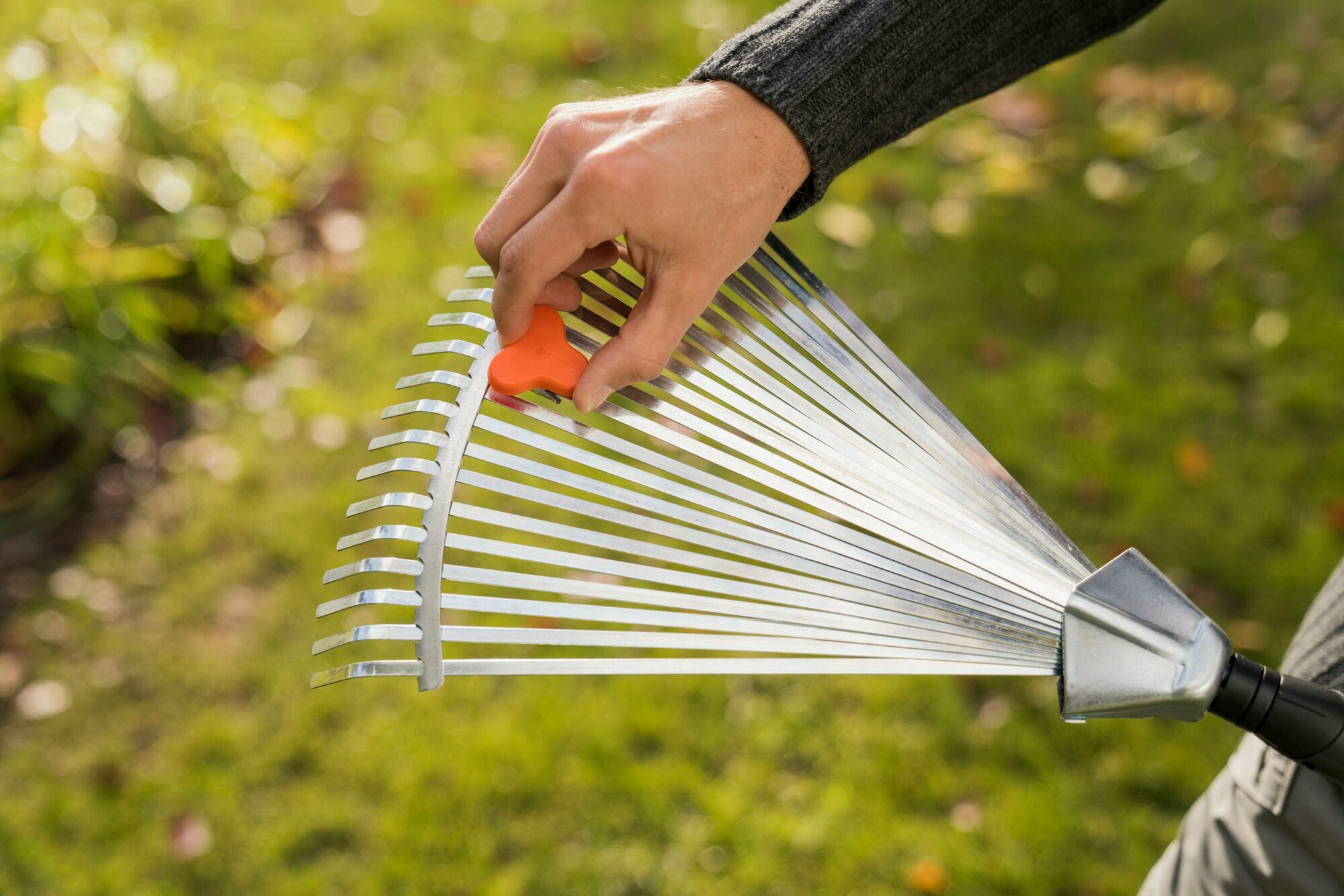 Грабли веерные регулируемые для Комбисистемы GARDENA представляют собой идеальный инструмент для сбора листьев, скошенной травы и прочих садовых отходов. Расстояние между гибкими оцинкованными зубьями из пружинной стали легко регулируется. Благодаря рабочей ширине от 30 до 50 см собирать можно как крупный, так и мелкий материал. Грабли могут использоваться с любой ручкой Комбисистемы GARDENA, однако компания GARDENA рекомендует использовать ручку длиной 130 см, в зависимости от роста пользователя.