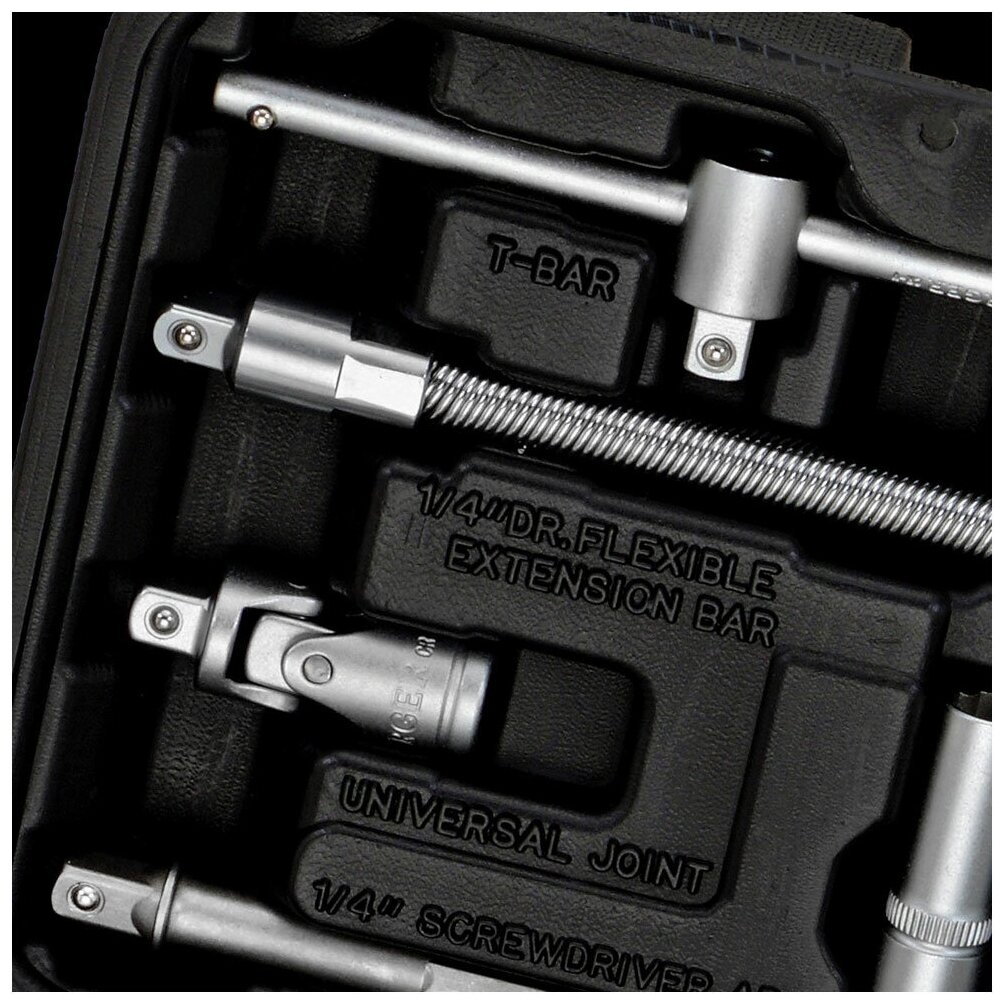 | Подробный состав комплекта | Головки торцевые 6-гранные SuperLock:,4, 4.5, 5, 5.5, 6, 7, 8, 9, 10, 11, 12, 13, 14 мм,,Головки торцевые длинные 6-гранные SuperLock:7, 8, 10, 12, 13 мм,,Трещотка (ключ трещоточный с быстрым сбросом) 45 зубов |