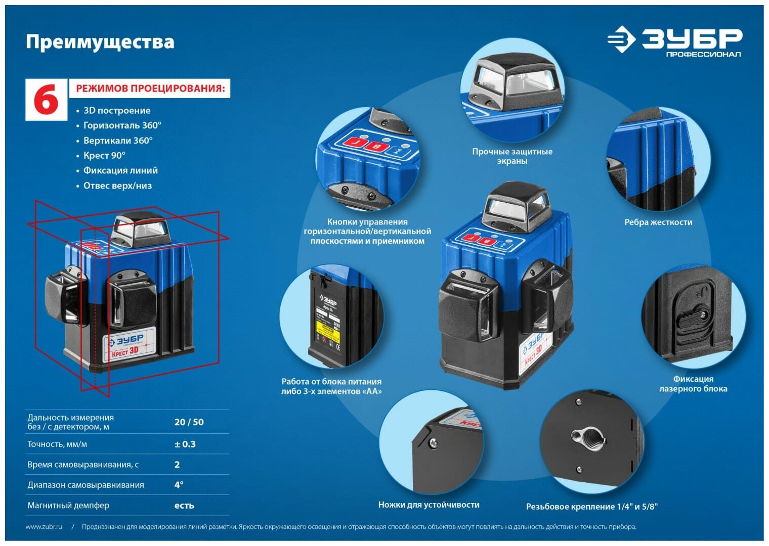 - Линейный лазерный нивелир Крест 3D ЗУБР 34908
