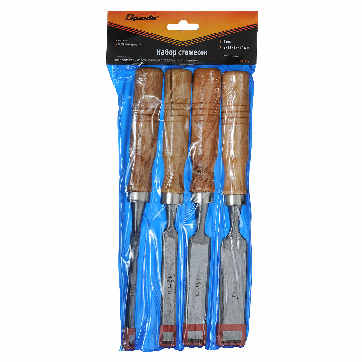 Набор стамесок SPARTA 6-12-18-24мм плоские деревянные рукоятки