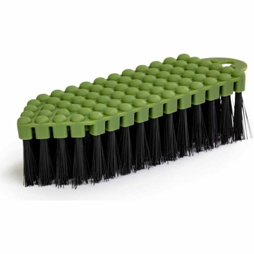 Щетка гибкая с жесткой щетиной. Гибкая верхняя часть позволяет очистить даже труднодоступные места. Щетка имеет форму утюжка, передняя часть которого удобна для очистки углов от въевшейся грязи. Отверстие в корпусе предназначено для того, что бы повесить щетку на крючок.