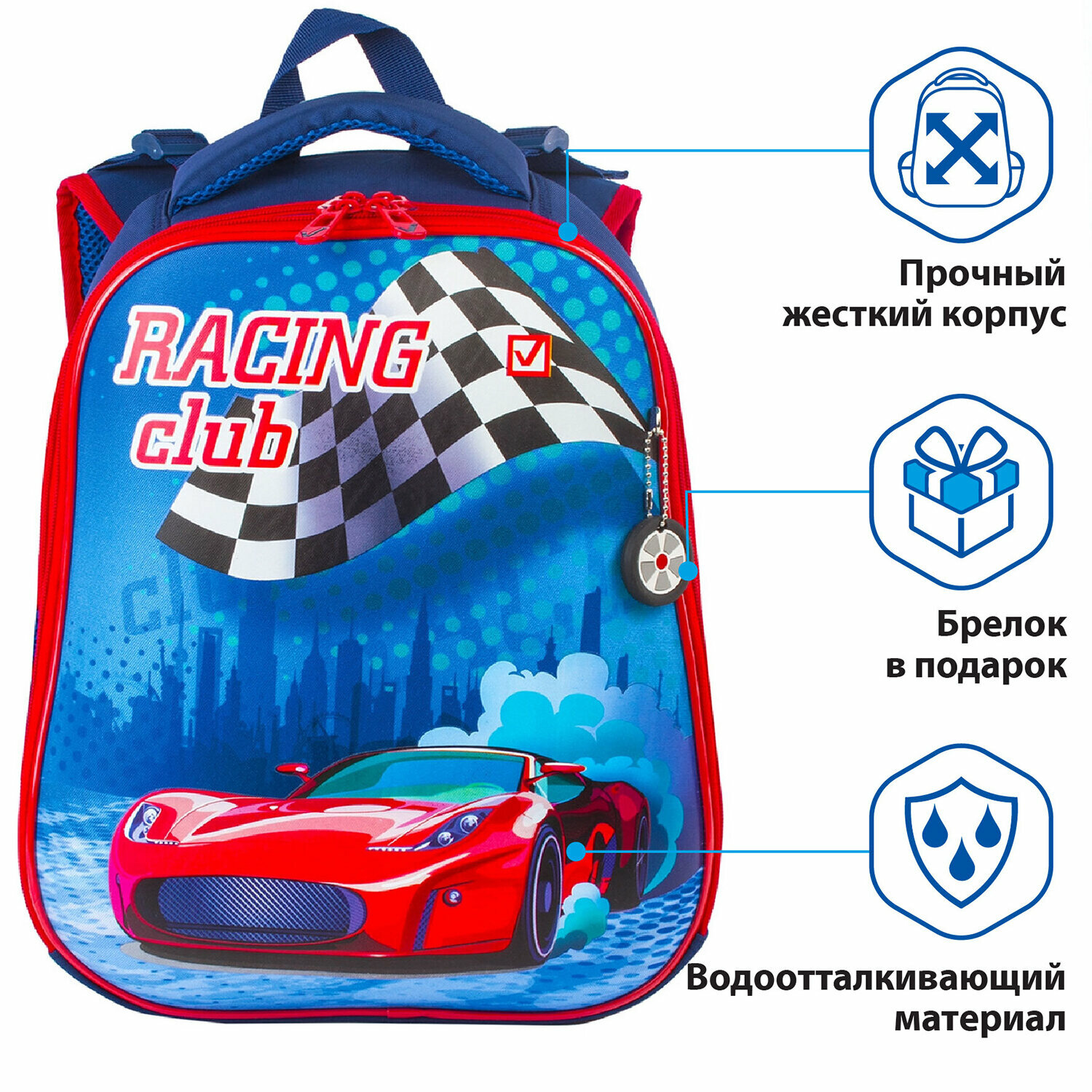 Ранец детский Brauberg PREMIUM Big Гоночный клуб Premium Ранец с 2-мя отделениями и брелоком для мальчиков Гоночный клуб