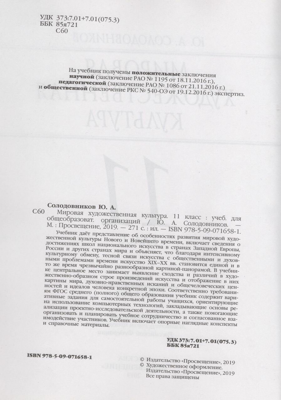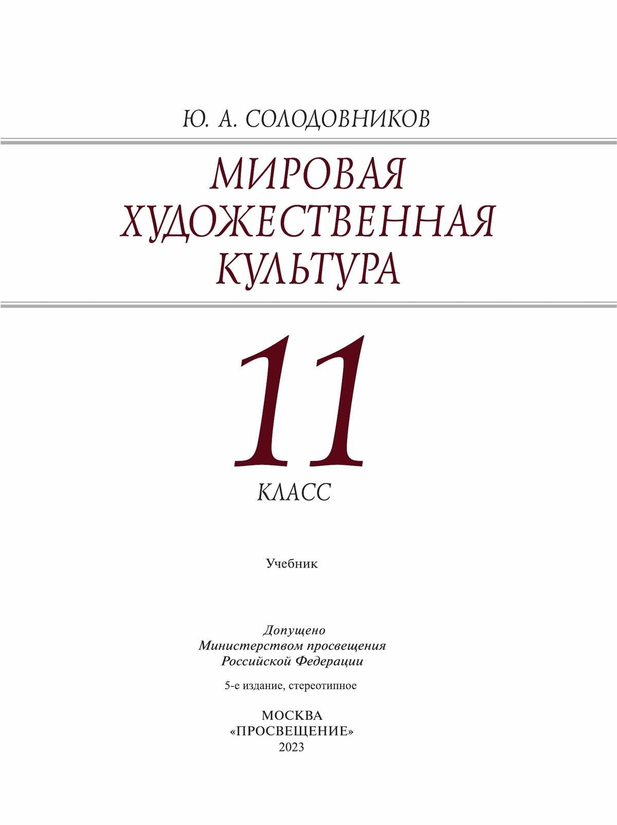 Мировая художественная культура. 11 класс. Учебник (Солодовников Юрий Алексеевич); Просвещение, 2023