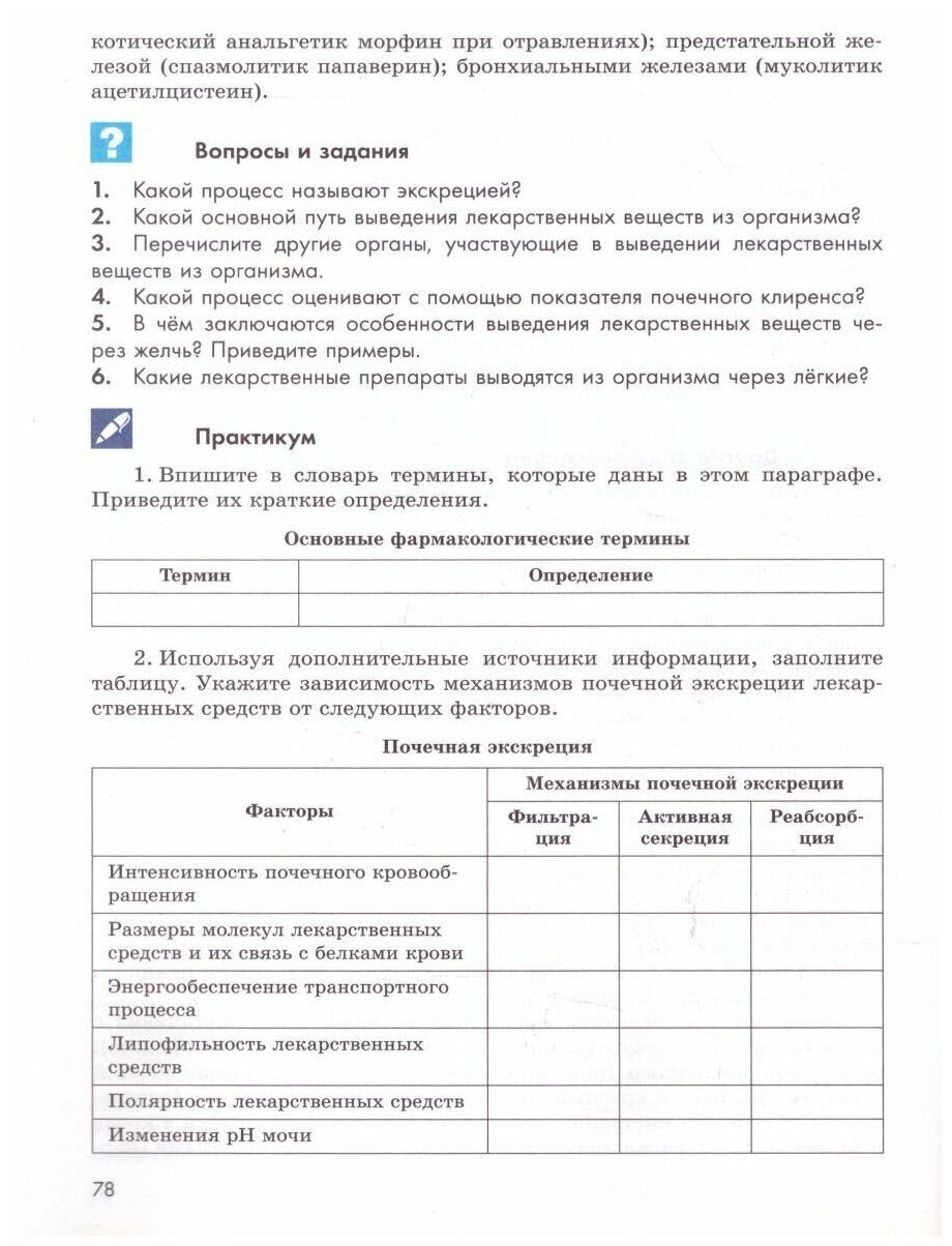 Интересный учебник. На мой взгляд многовато места уделено формам лекарственных средств (жидкие, мази и т.д.), а механизмам всасывания, действия и выведения маловато (но классно что они вообще есть!). Так же не хватает каких-то практических занятий, все-таки фармакология предполагает и определение количества веществ, и составление рецепта с расчетом дозы, и влияние растворимости от рН среды, например. Я бы еще ожидала увидеть основные классы фармпрепаратов.