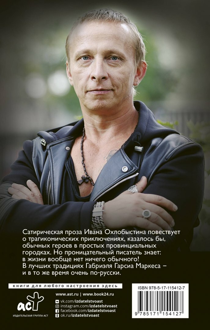 Сатирическая проза Ивана Охлобыстина повествует о трагикомических приключениях, казало бы, обыденных героев в простых провинциальных городках. Но проницательный писатель знает: в жизни вообще нет ничего обычного! Смех и слезы, настоящие человеческие драмы и абсурдистские повороты судеб удерживают наше внимание от первой до последней строки этой фантасмагорической книги. Она и динамит, и фейерверк. Книга как номер сумасшедшего клоуна, который в прошлом был писателем-гуманистом… или физиком-ядерщиком. В лучших традициях Габриэля Гарсиа Маркеса - и в то же время очень по-русски.