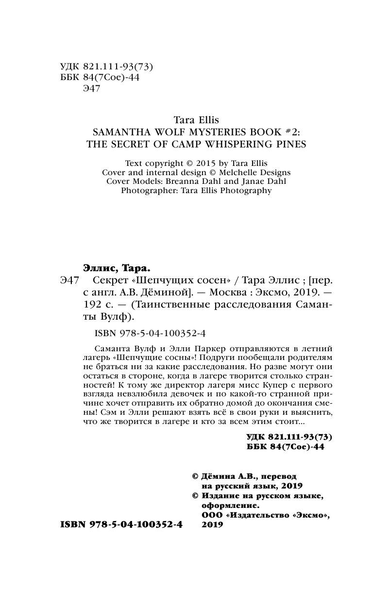 Книга: Секрет "Шепчущих сосен" (Демина Анастасия Владимировна (переводчик), Эллис Тара); Эксмо, 2019