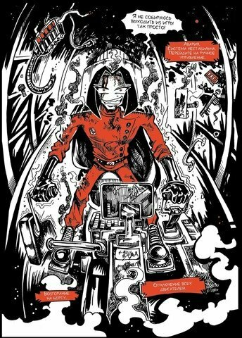 Рисунок - отдельная крутота. Идея с использованием лишь красного цвета вместо традиционного ч/б либо полноценной покраски - гениальна. Смотрится всё бесподобно, 10 из 10.