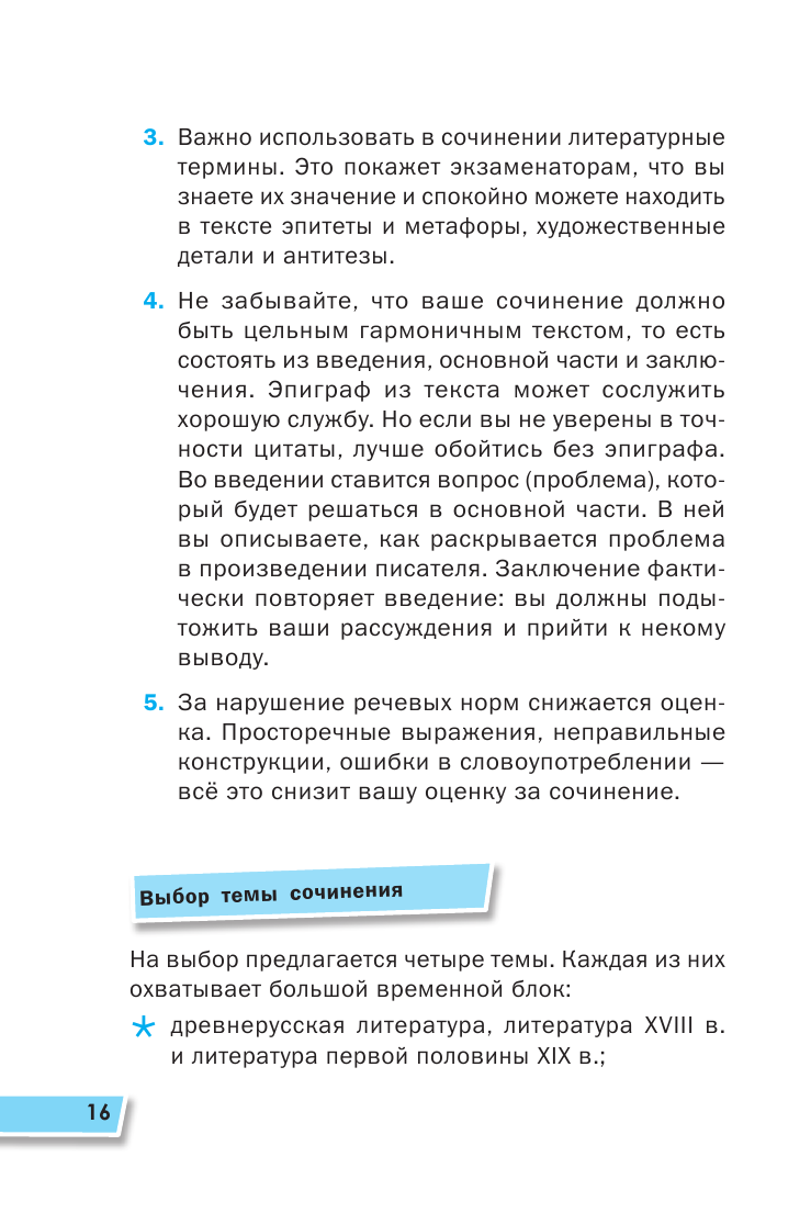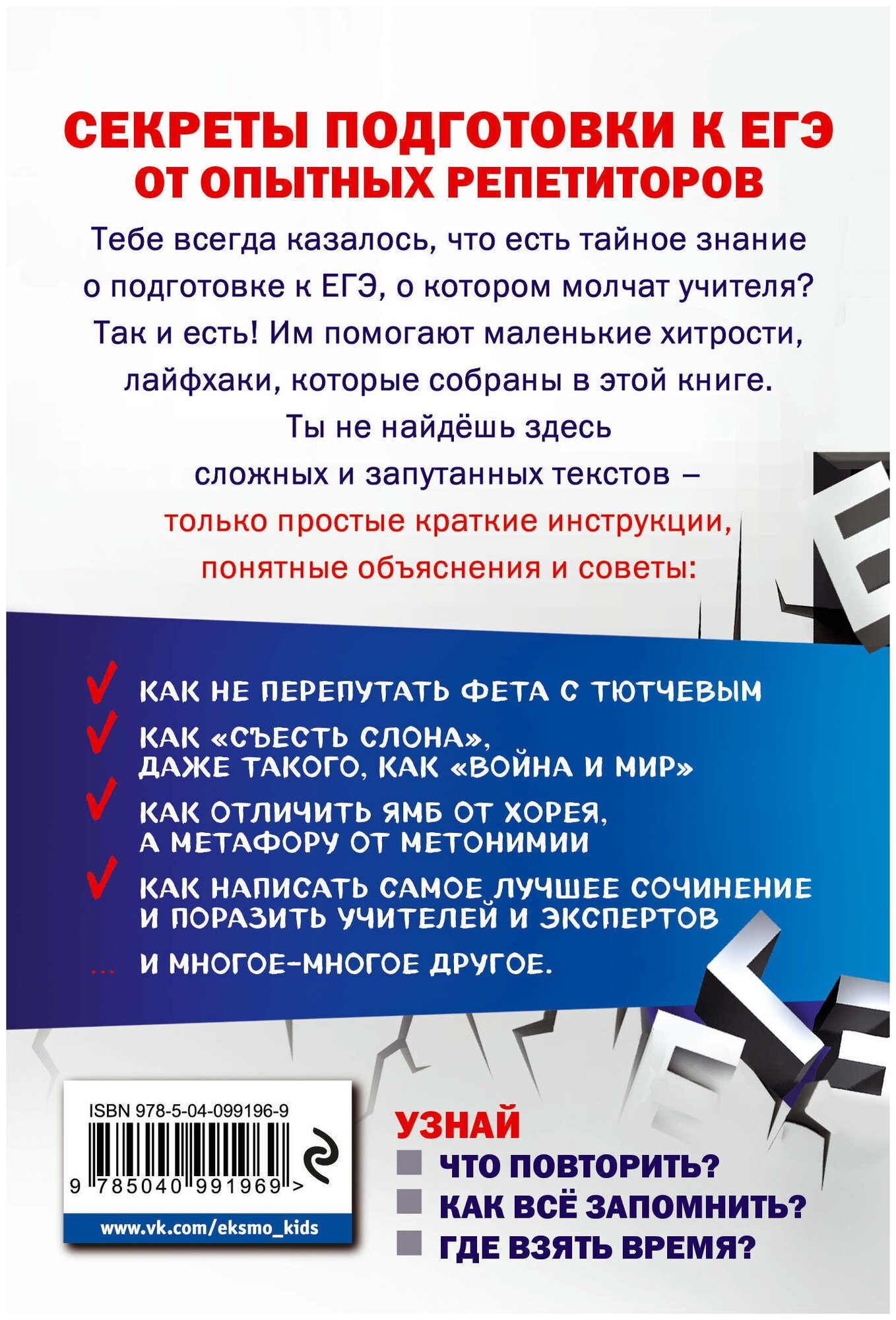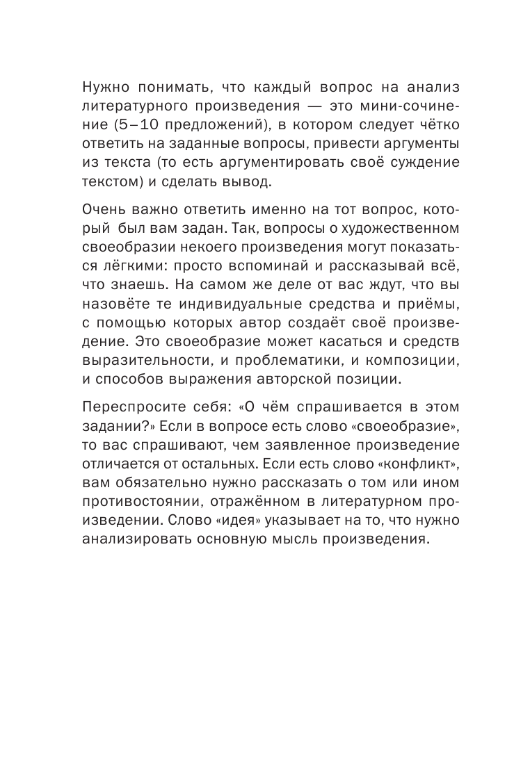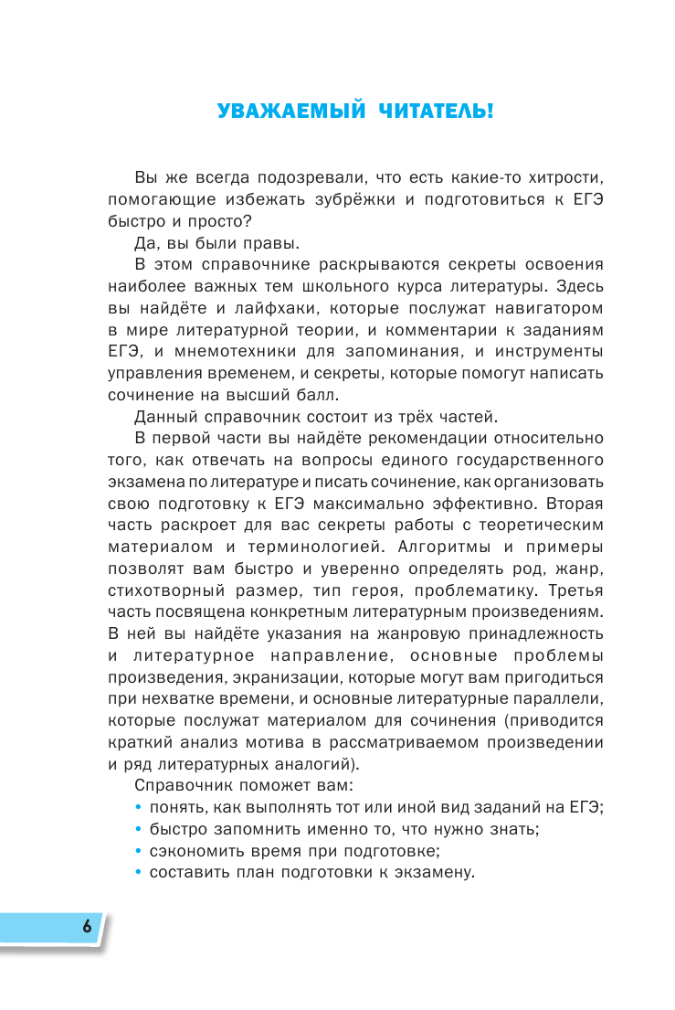 Пособие содержит рекомендации по выполнению основных типов заданий, встречающихся на ЕГЭ по литературе, а также ценные советы и лайфхаки, помогающие облегчить учебный процесс и усвоить все темы школьного курса.