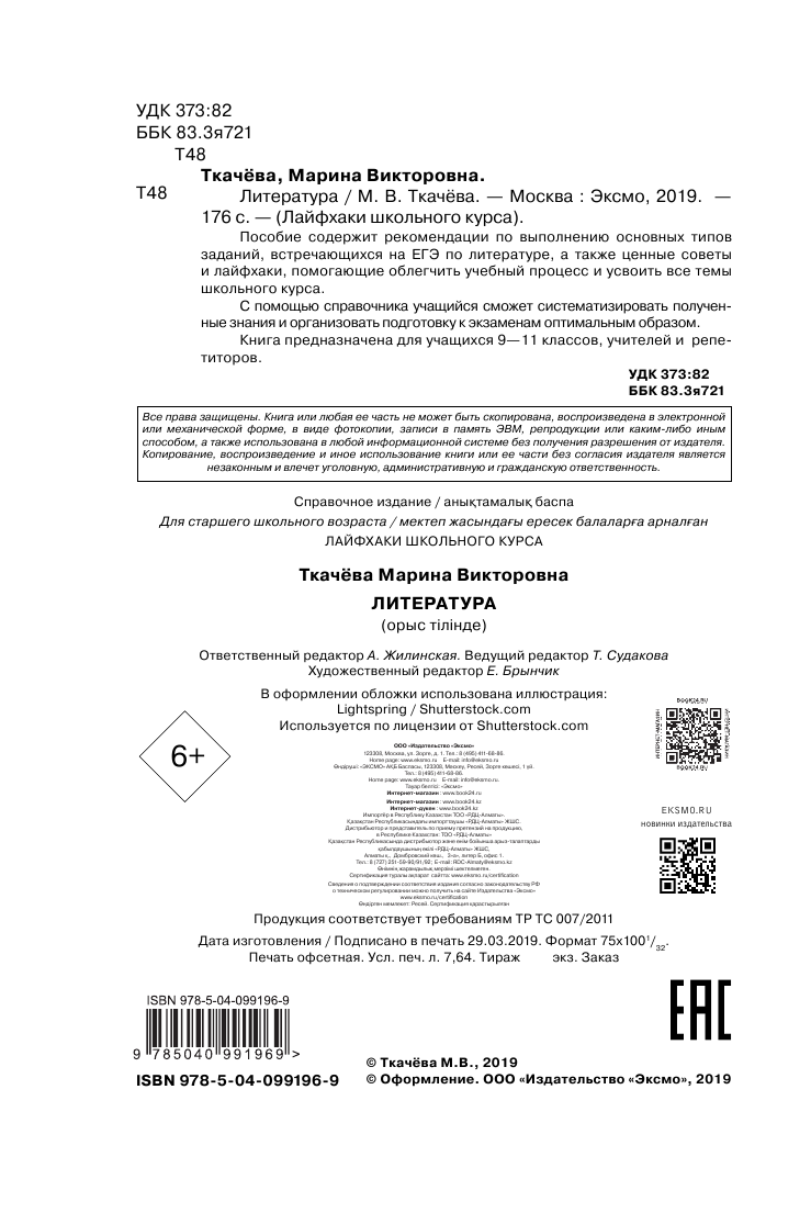 Книга: Литература (Ткачева Марина Викторовна); Эксмо-Пресс, 2019