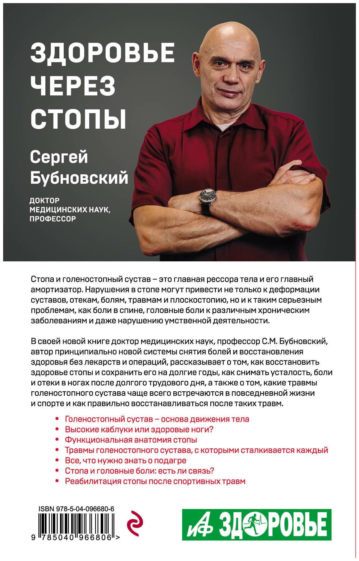 В своей новой книге доктор медицинских наук, профессор С.М. Бубновский, автор принципиально новой системы снятия болей и восстановления здоровья без лекарств и операций, рассказывает о том, как восстановить здоровье стопы и сохранить его на долгие годы, как снимать усталость, боли и отеки в ногах после долгого трудового дня, а также о том, какие травмы голеностопного сустава чаще всего встречаются в повседневной жизни и спорте, и как правильно восстанавливаться после таких травм.