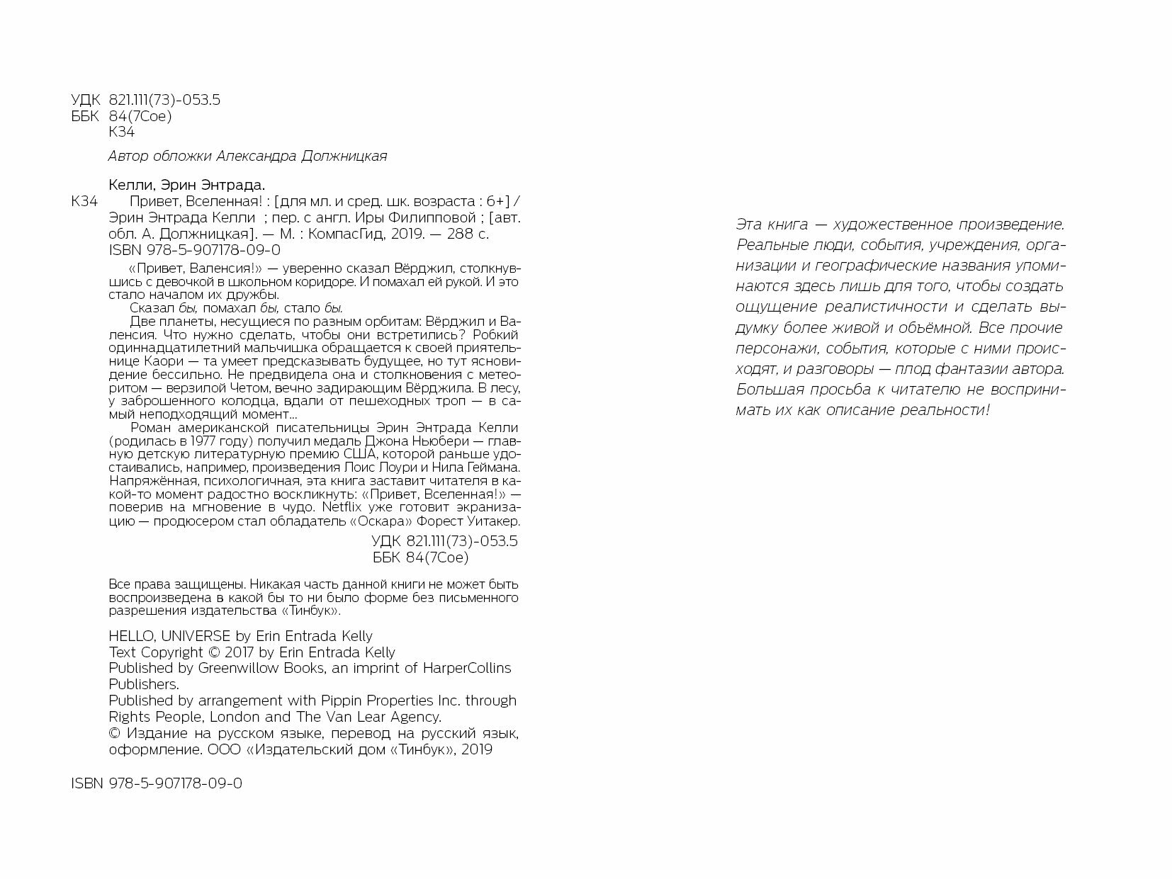 Книга: Привет Вселенная! (Келли Эрин Энтрада); КомпасГид, 2019