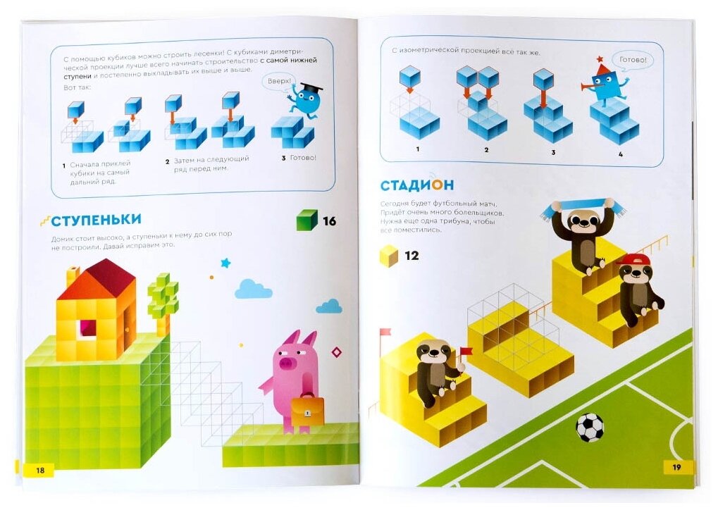 2. Выполняя задания, дети разбираются с видами проекций кубиков и развивают трёхмерное мышление, то есть способность "вращать" предмет в своей голове.