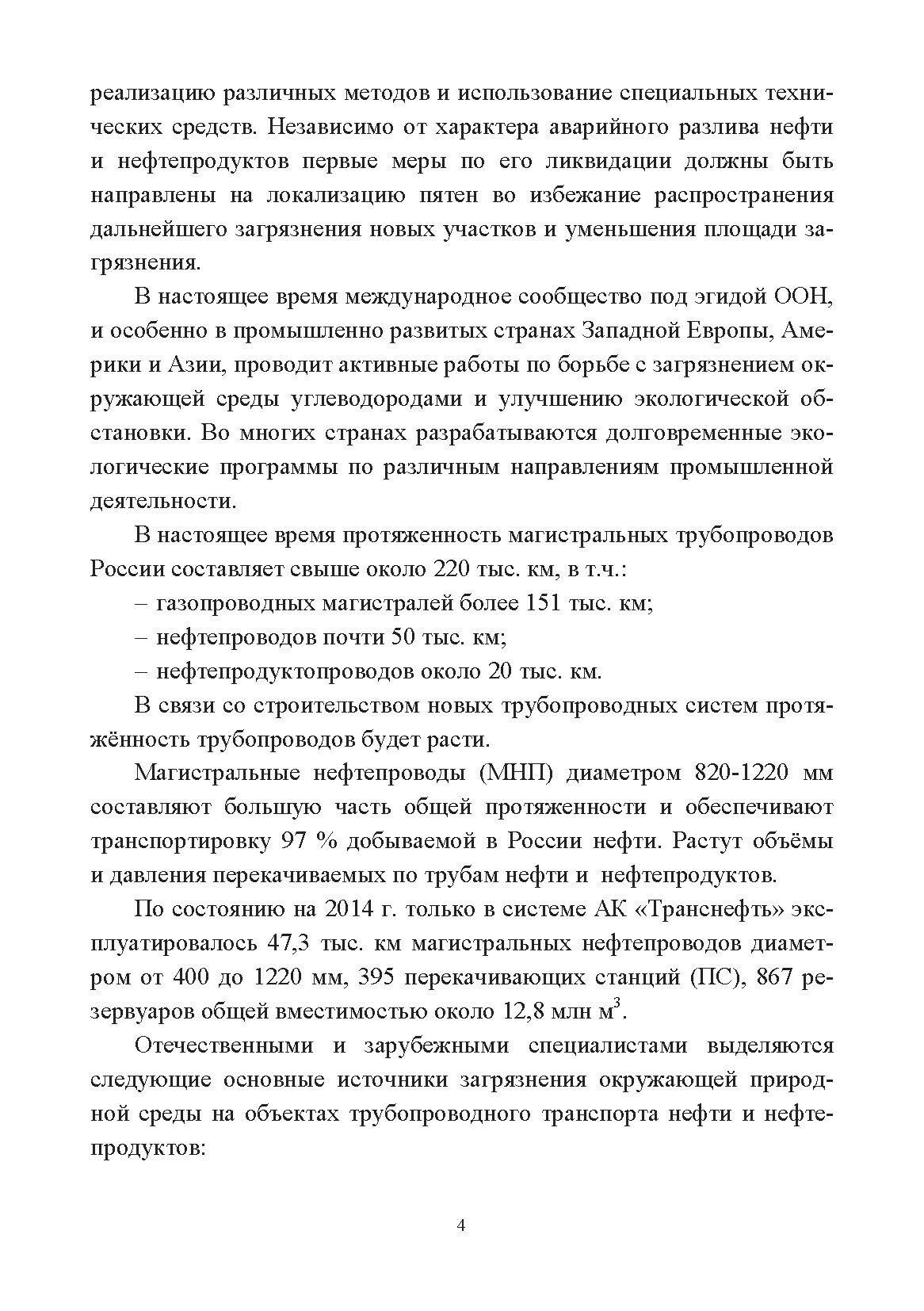 Приведены основные сведения о разливах нефти и дана классификация их возможных источников и современных средств ликвидации на суше и водной поверхности. Даны примеры расчётов аварийных потерь нефти. Рассмотрена оснащенность объектов трубопроводного транспорта средствами ликвидации аварийных разливов нефти (ЛАРН) и освещена утилизация нефтенасыщенных отходов.