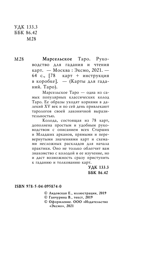 Марсельское Таро. Руководство для гадания и чтения карт (78 карт + инструкция) (Фичино М.); ООО "Издательство "Эксмо", 2020