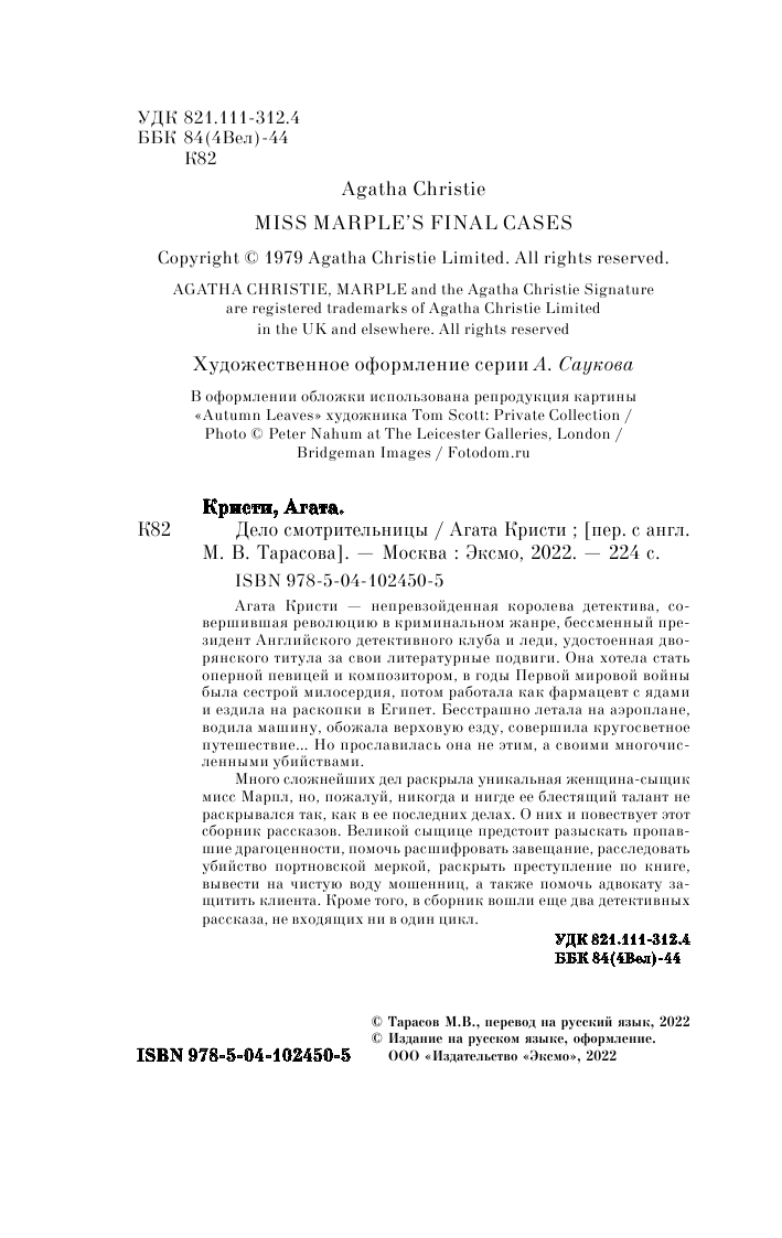 Книга: Дело смотрительницы (Агата Кристи); Эксмо, Редакция 1, 2019