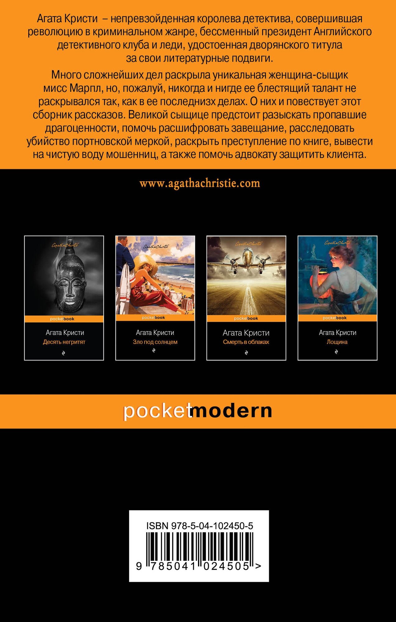 Много сложнейших дел раскрыла уникальная женщина-сыщик мисс Марпл, но, пожалуй, никогда и нигде ее блестящий талант не раскрывался так, как в ее последних делах. О них и повествует этот сборник рассказов. Великой сыщице предстоит разыскать пропавшие драгоценности, помочь расшифровать завещание, расследовать убийство портновской меркой, раскрыть преступление по книге, вывести на чистую воду мошенниц, а также помочь адвокату защитить клиента. Кроме того, в сборник вошли еще два детективных рассказа, не входящих ни в один цикл.