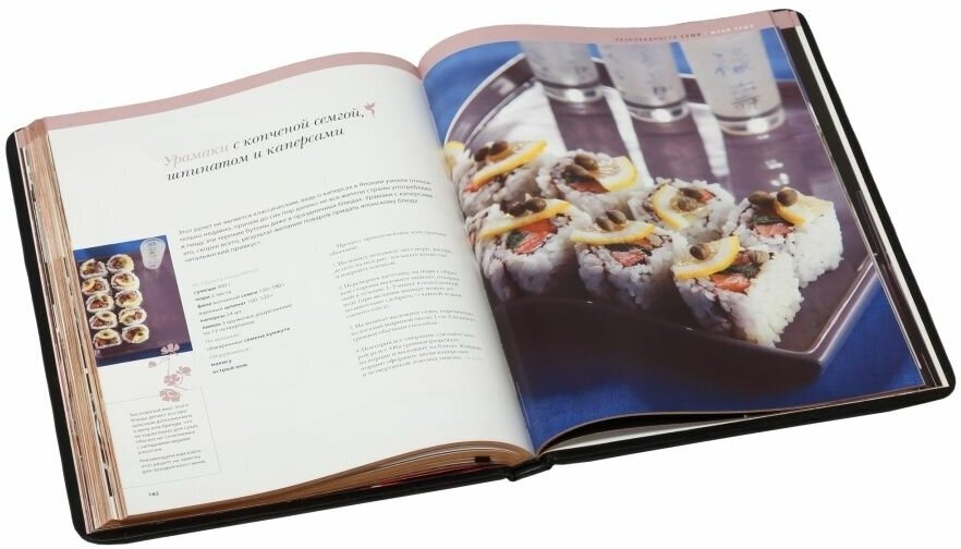 Замечательная книга, большого формата, с красочными фотографиями. Подробно описан этикет, приспособления, все ингредиенты, а также множество рецептов приготовления суши. Многие из описанных рецептов являются классическими японскими и ингредиенты для них найти будет довольно затруднительно, однако есть и адаптированные для европейцев рецепты и советы по замене некоторых составляющих на более привычные для нас. Книга приятна и интересна как в практическом, так и в теоретическом плане.