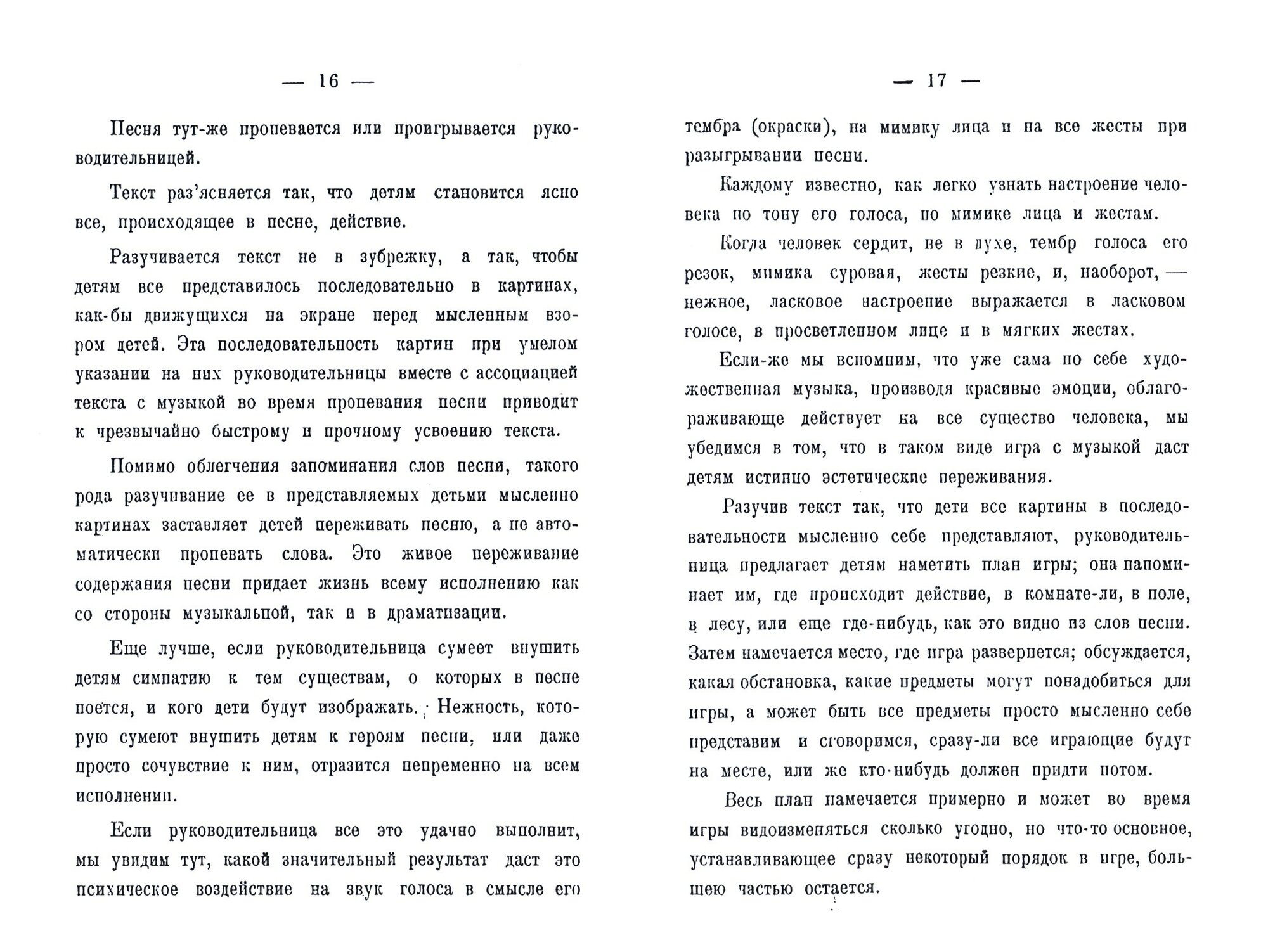 Репринт с издания Петроград 1923. Много нот. Содержание: Источники для выбора материала для музыкальных игр; Общие правила при проведении музыкальных игр; План проведения игры с пением; Краткий очерк истории и характера русской народной песни; Хороводы; Музыкальные игры для младших дошкольников; Народные песни с хороводами без сопровождения инструмента; Песни с аккомпанементом; Игры для младших дошкольников с песнями Аренского, Кюп, Брамса; Песни немецких композиторов; Песни с играми для дошкольников старшего возраста; Народная музыка (песни без аккомпанемента); Песни с сопровождением рояля: Балакирева; Римского-Корсакова; Лядова; Гречанинова; Аренского; Кюи; Песни немецких композиторов: Брамса; Шумана; Вебера; Моцарта. Надежда Николаевна Доломанова (1870-1942) была составителем музыкальных сборников и автором методических пособий по музыкальному воспитанию детей дошкольного и младшего школьного возраста. Она написала слова к нескольким песням и хорам Ц.А. Кюи, его детской опере "Иванушка-дурачок", пьесе с музыкой для детей "Елочкин сон" А.Т. Гречанинова. Книга изготовлена по технологии "печать по требованию". Тираж 30 экз.