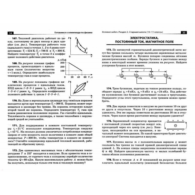 В книги представлены олимпиадные задачи по физике по курсу основой (7-9 кл.) и старшой (10-11кл.) школ. Как указано в книге, задачи по уровню схожи с муниципальным этапом ВсОШ. В пособии также есть решения и справочный материал. Рекомендую книгу для учеников 7-9 классов, т.к. задач для них в книге представлено больше.