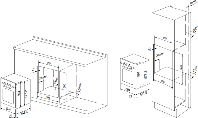| Размеры ниши для встраивания (ВхШхГ) | 59.5 х 59.5 х 56.5 см |