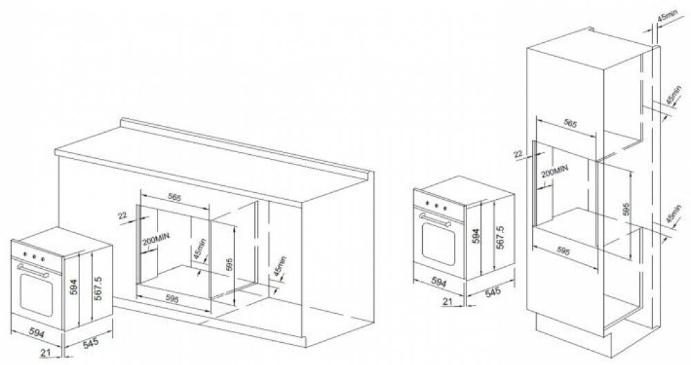 | Размеры ниши для встраивания (ВхШхГ) | 59х59,5х56,9 см |