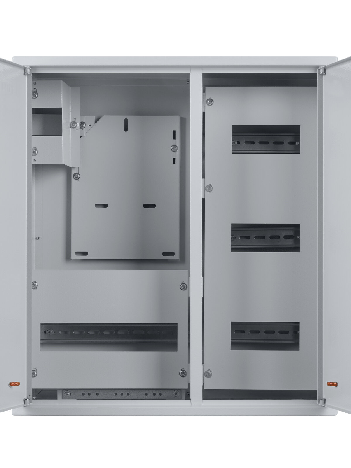 Оптимально подобранные размеры корпуса. Удобство монтажа. Возможность опломбировки вводного автоматического выключателя. Большой выбор типоразмеров. Высококачественное порошковое покрытие. Универсальная монтажная панель для установки счетчика.