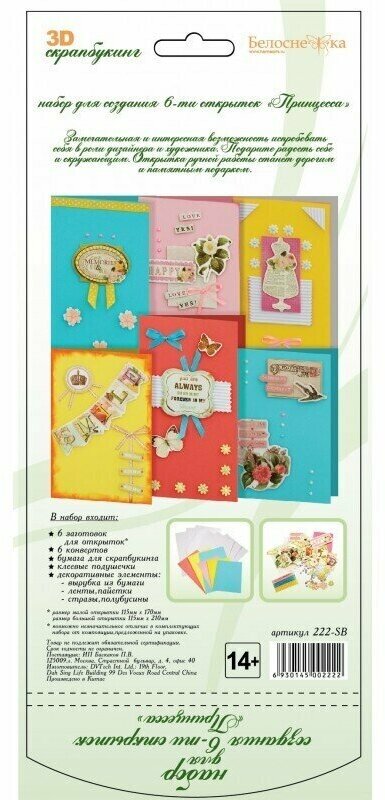 | Комплектация | заготовки - 6 шт, конверты - 6 шт, клеевые подушечки, декоративные элементы |