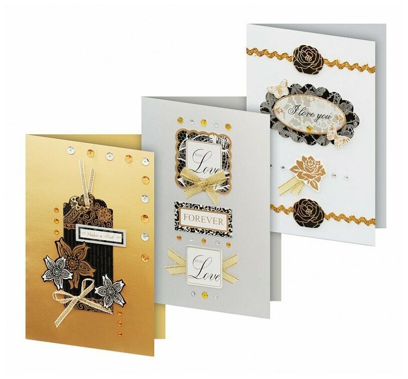 | Комплектация | заготовки - 3 шт, конверты - 3 шт, комплект клеевых подушечек 7х7 см - 1 шт, декоративные элементы |