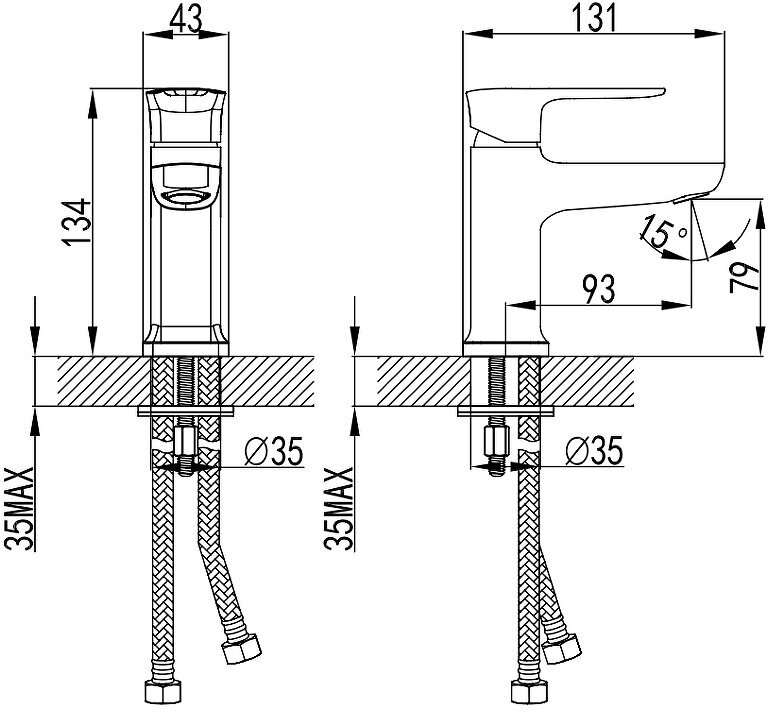 Комплектация: Скрытый аэратор Neoperl Slim SSR. Керамический картридж 25 мм. Гибкая подводка 1/2" 35 см. Металлическая рукоятка.